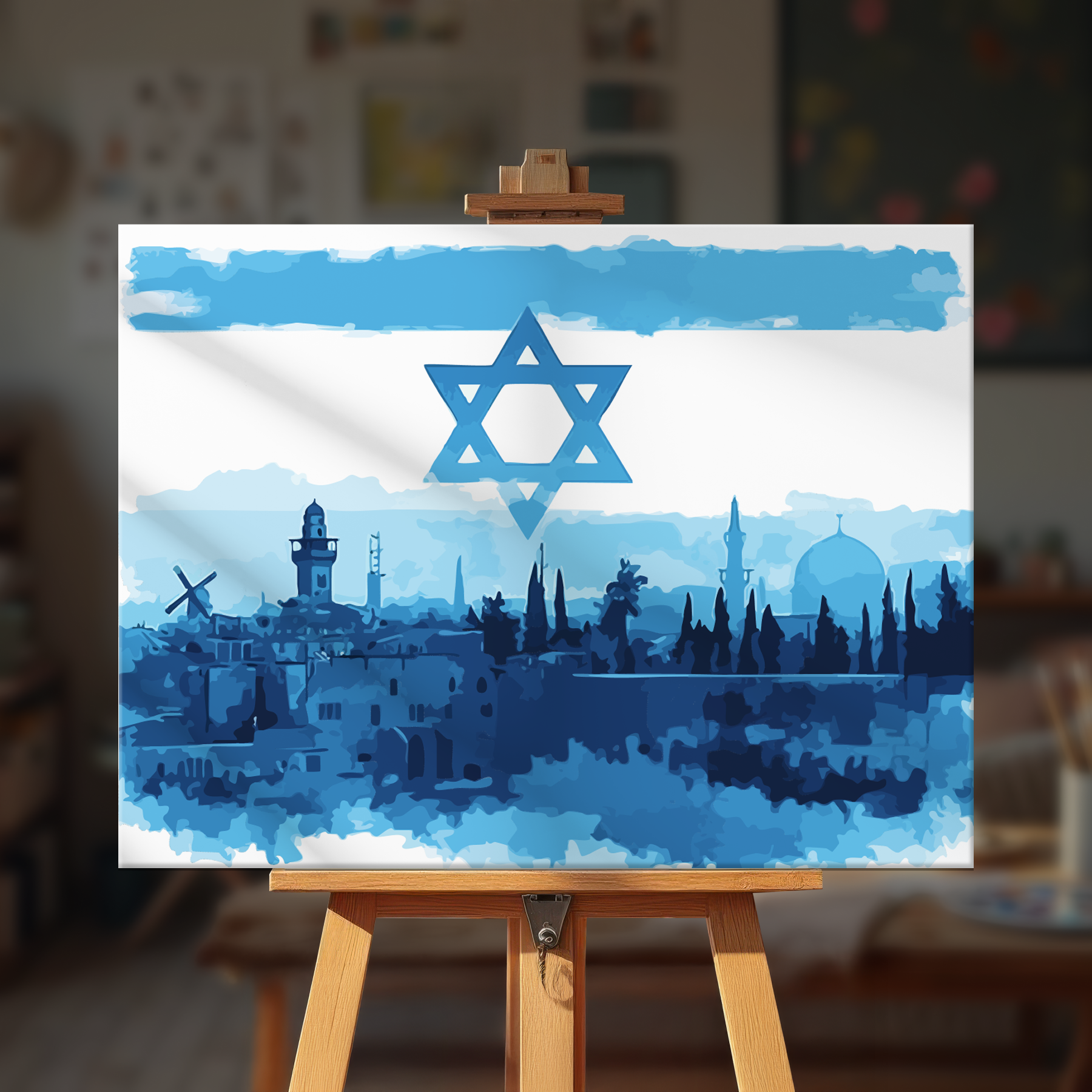 The canvas is pre-stretched on a wooden frame — ready to hang when finished.