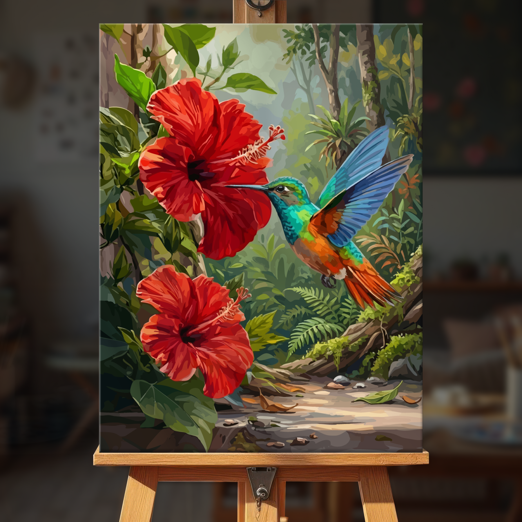 The canvas is pre-stretched on a wooden frame — ready to hang when finished.