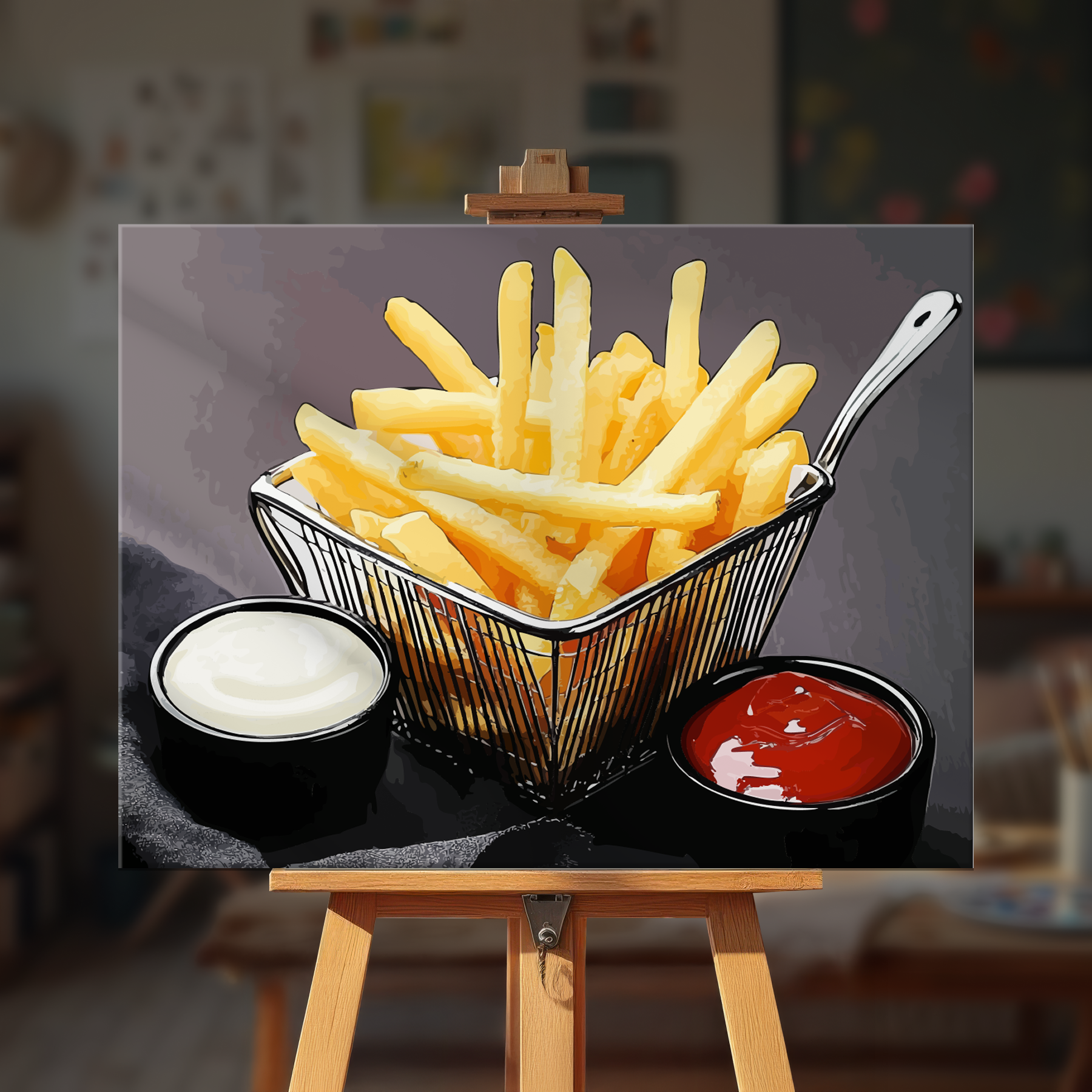 The canvas is pre-stretched on a wooden frame โ ready to hang when finished.