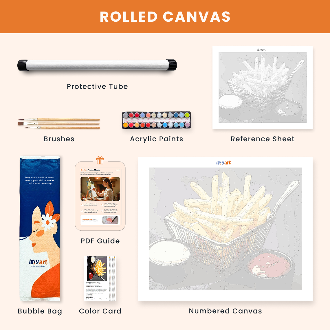 - Premium acrylic paint set (pre-mixed and numbered)