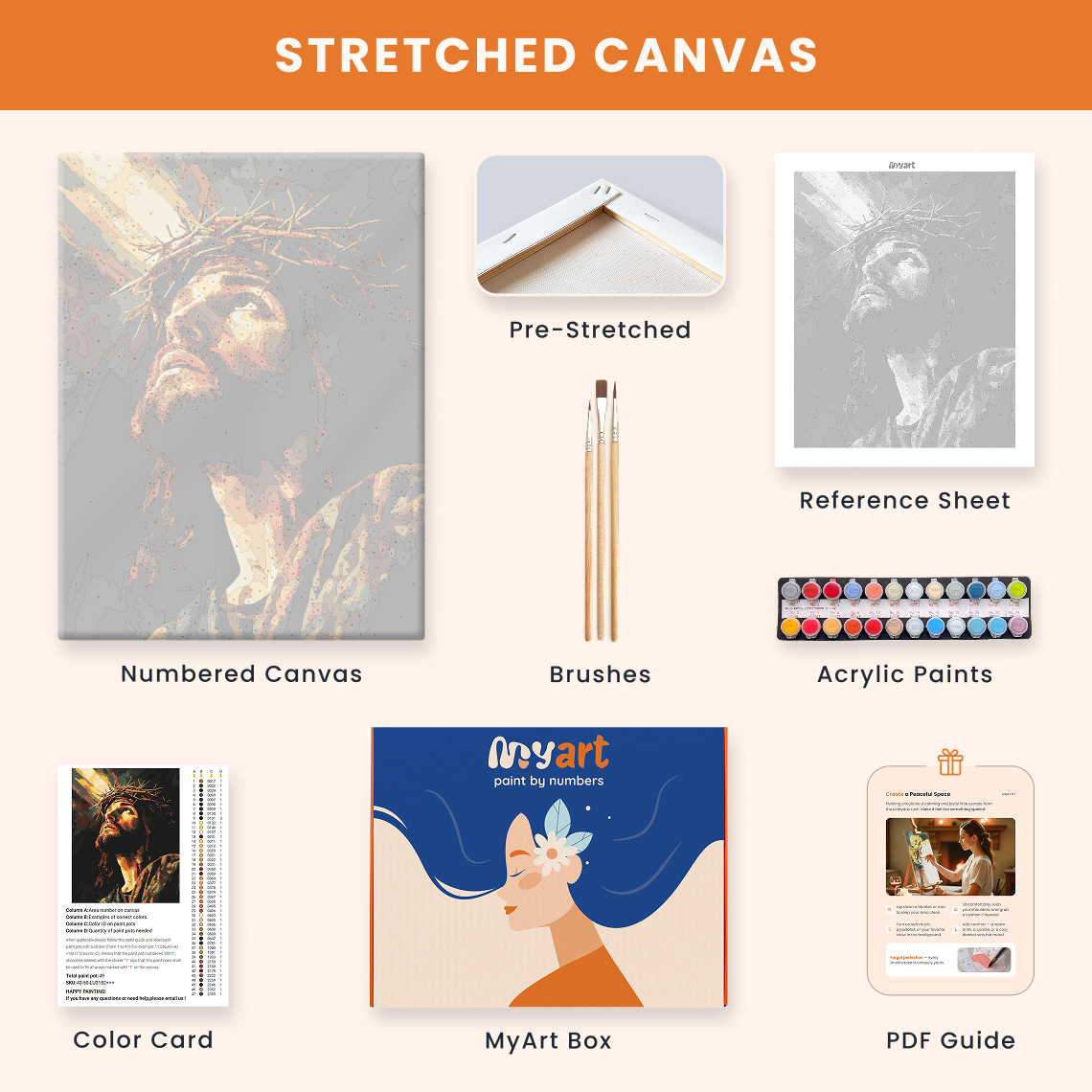 The canvas is pre-stretched on a wooden frame — ready to hang when finished.