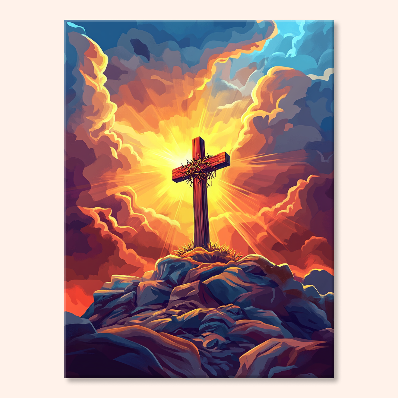The canvas is pre-stretched on a wooden frame — ready to hang when finished.