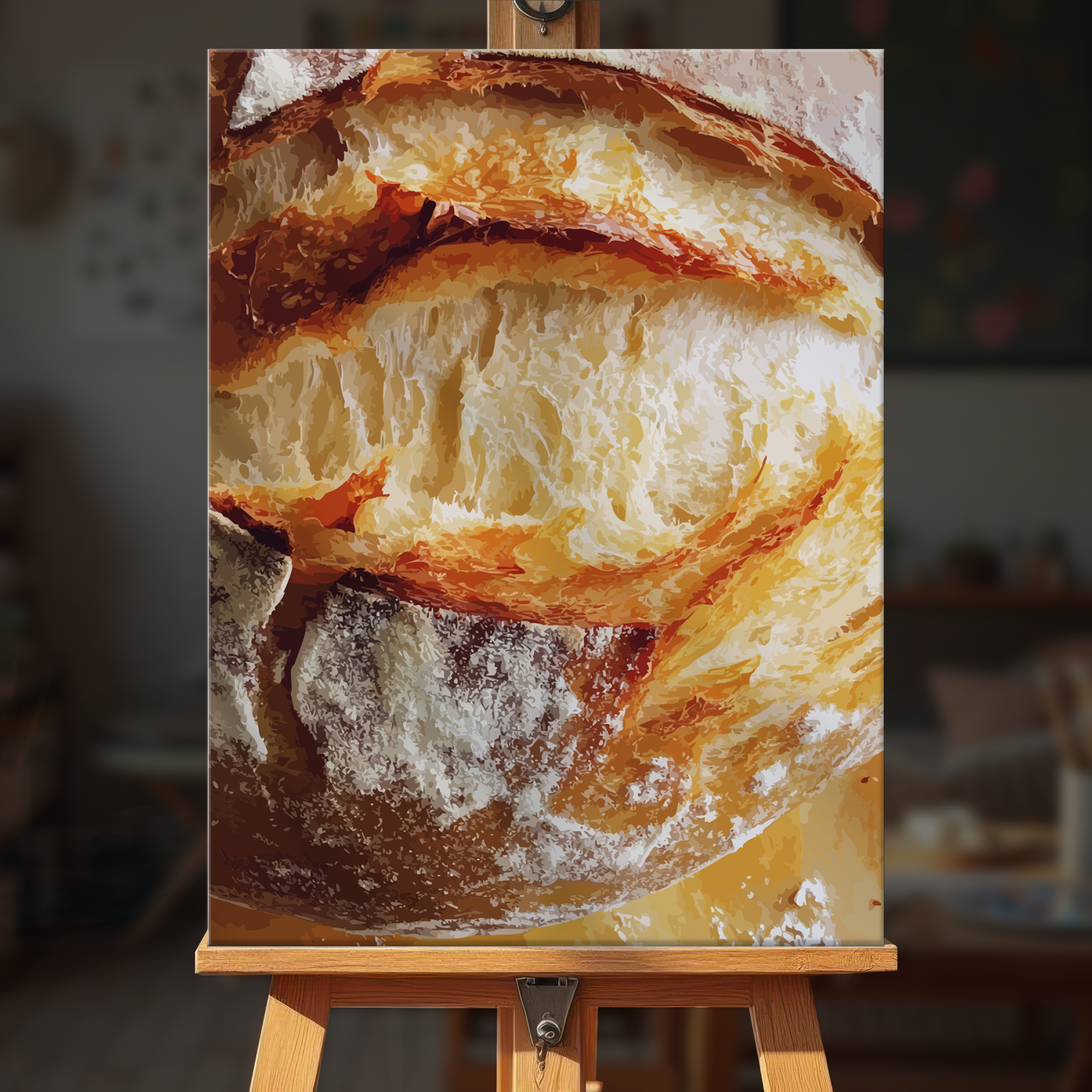 The canvas is pre-stretched on a wooden frame โ ready to hang when finished.