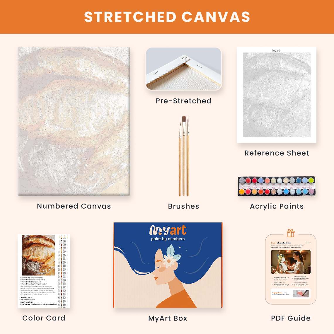- Premium acrylic paint set (pre-mixed and numbered)