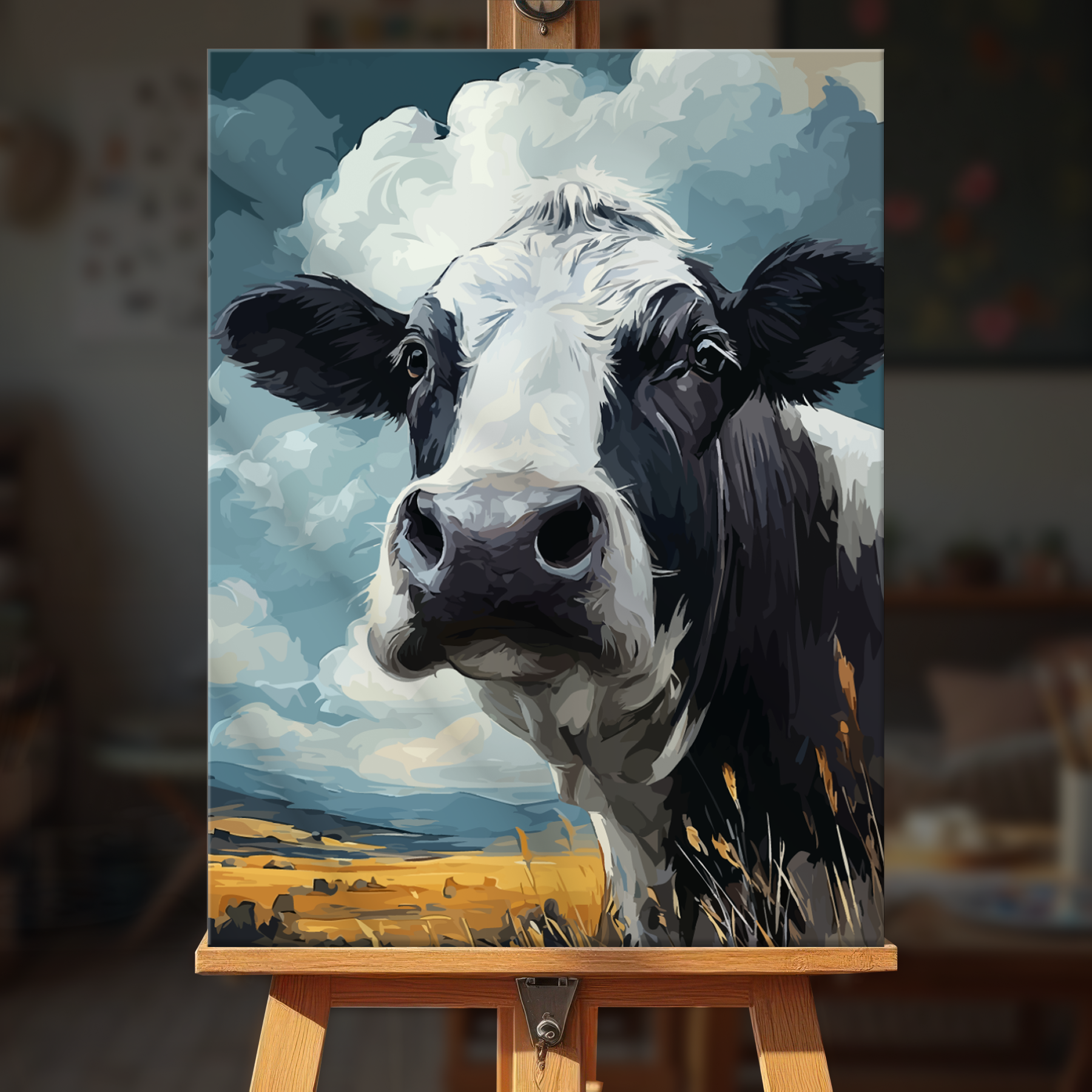 The canvas is pre-stretched on a wooden frame — ready to hang when finished.