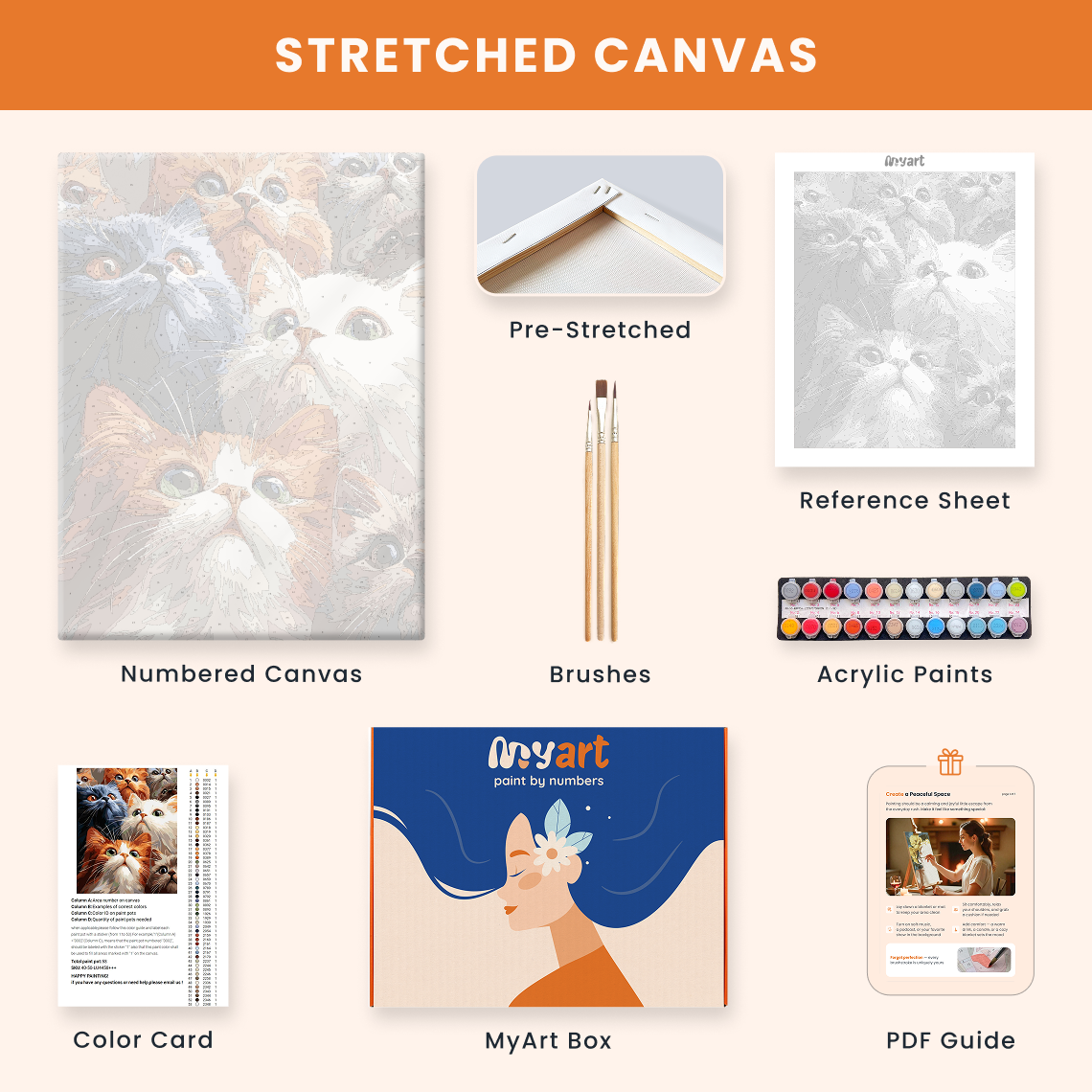 - Premium acrylic paint set (pre-mixed and numbered)