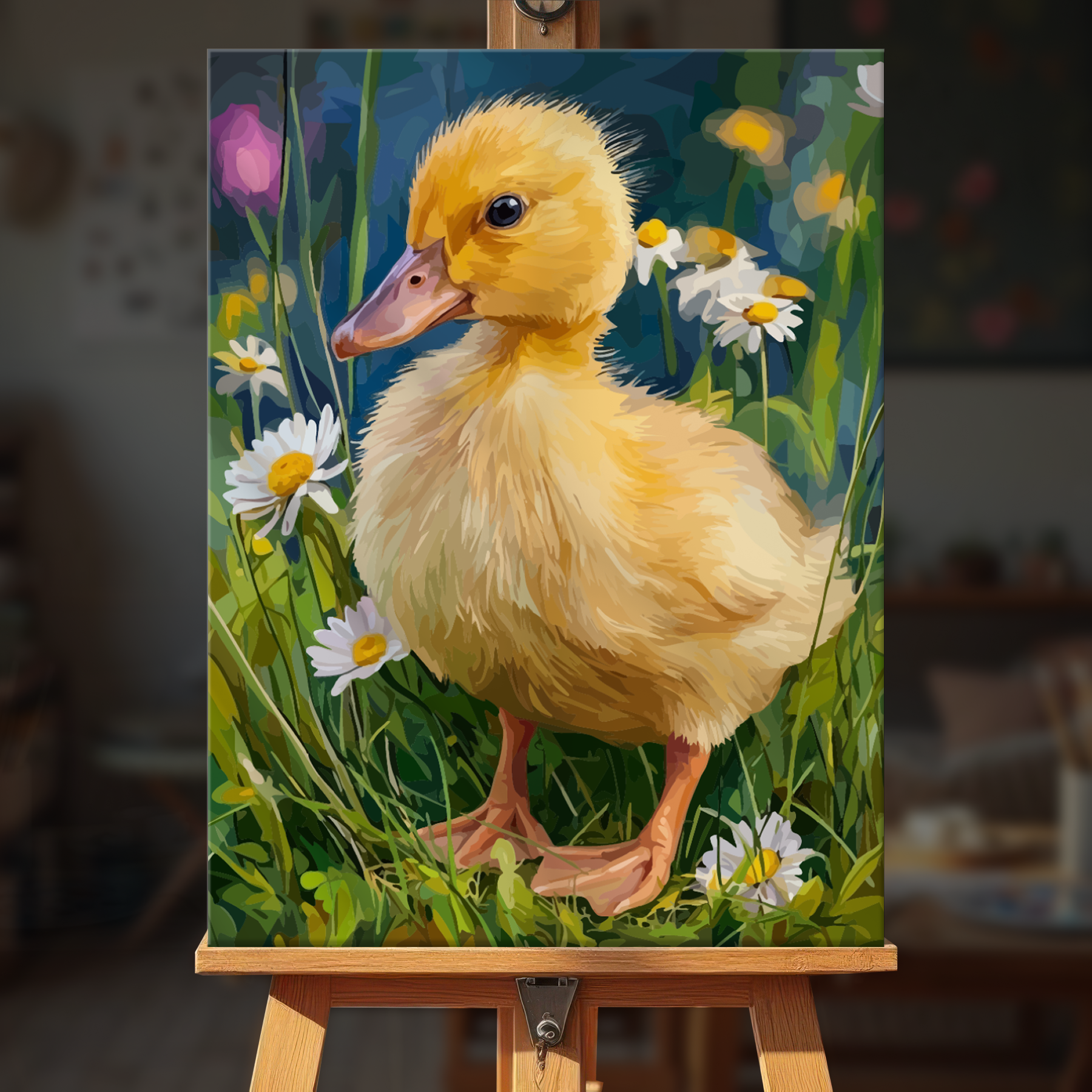 The canvas is pre-stretched on a wooden frame — ready to hang when finished.