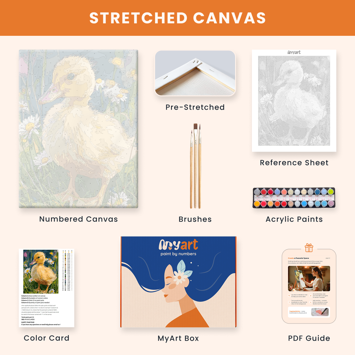 - Premium acrylic paint set (pre-mixed and numbered)