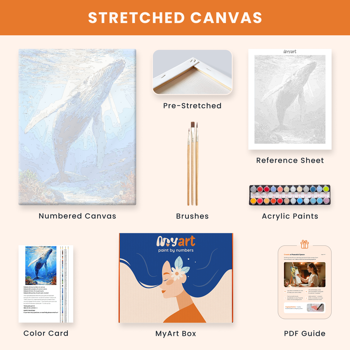 - Premium acrylic paint set (pre-mixed and numbered)