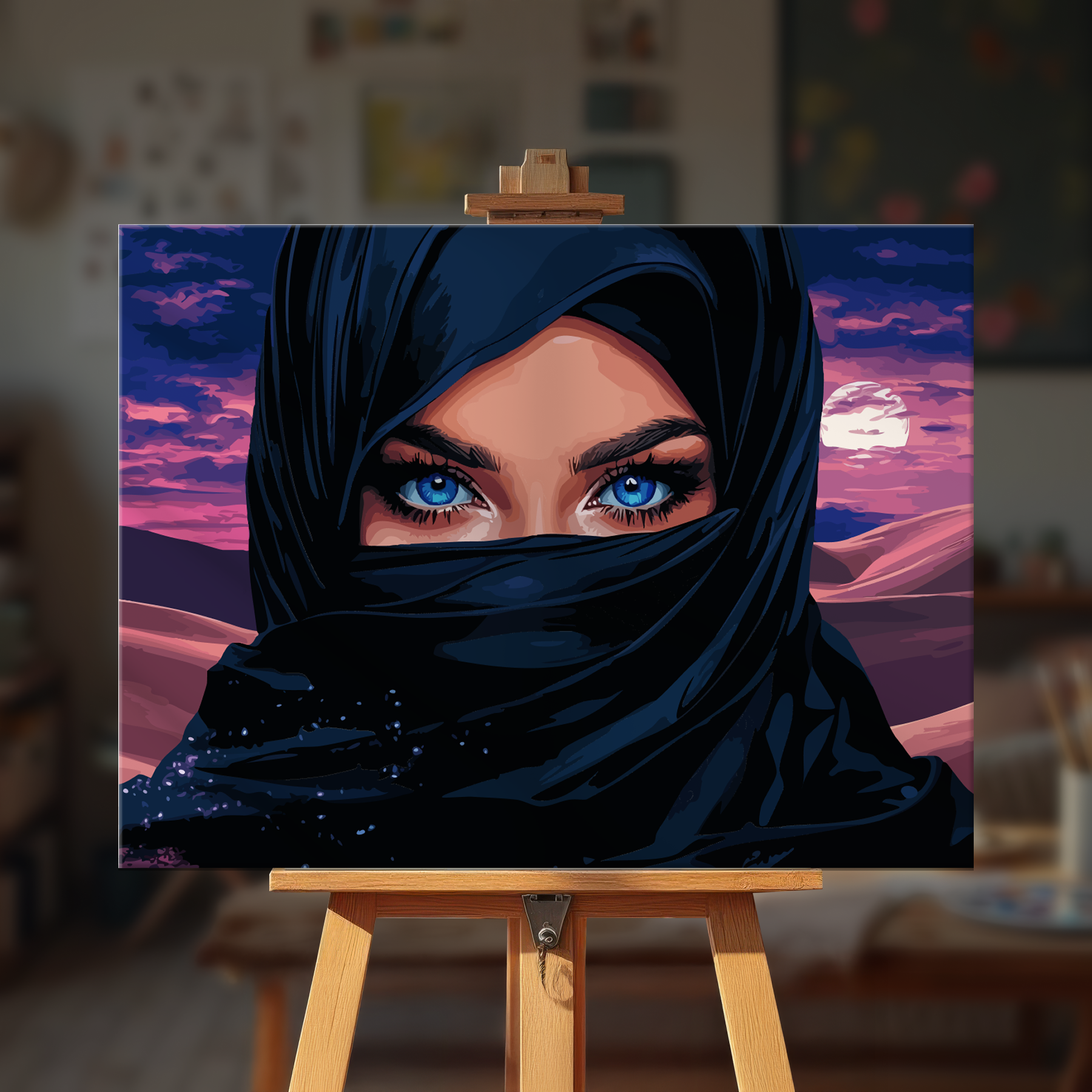 The canvas is pre-stretched on a wooden frame — ready to hang when finished.