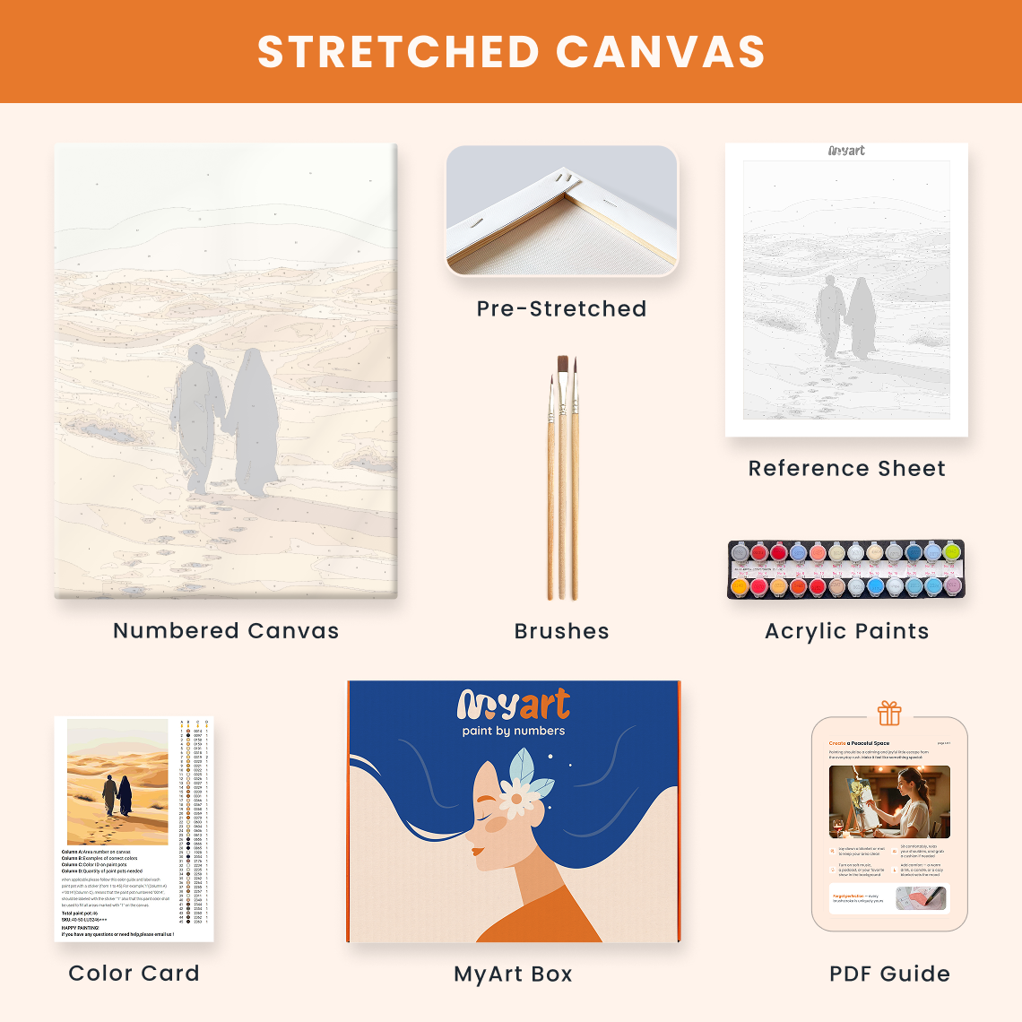 The canvas is pre-stretched on a wooden frame — ready to hang when finished.