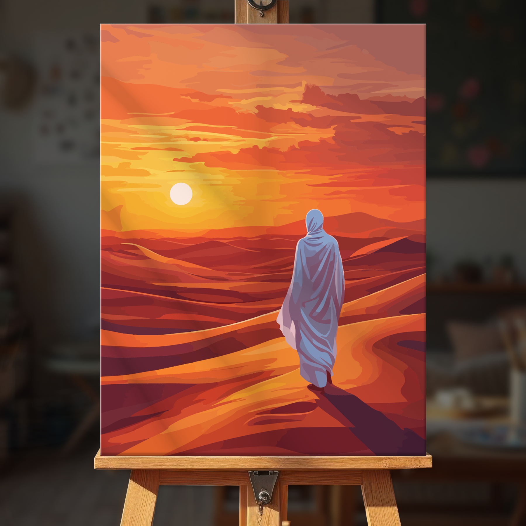 The canvas is pre-stretched on a wooden frame โ ready to hang when finished.