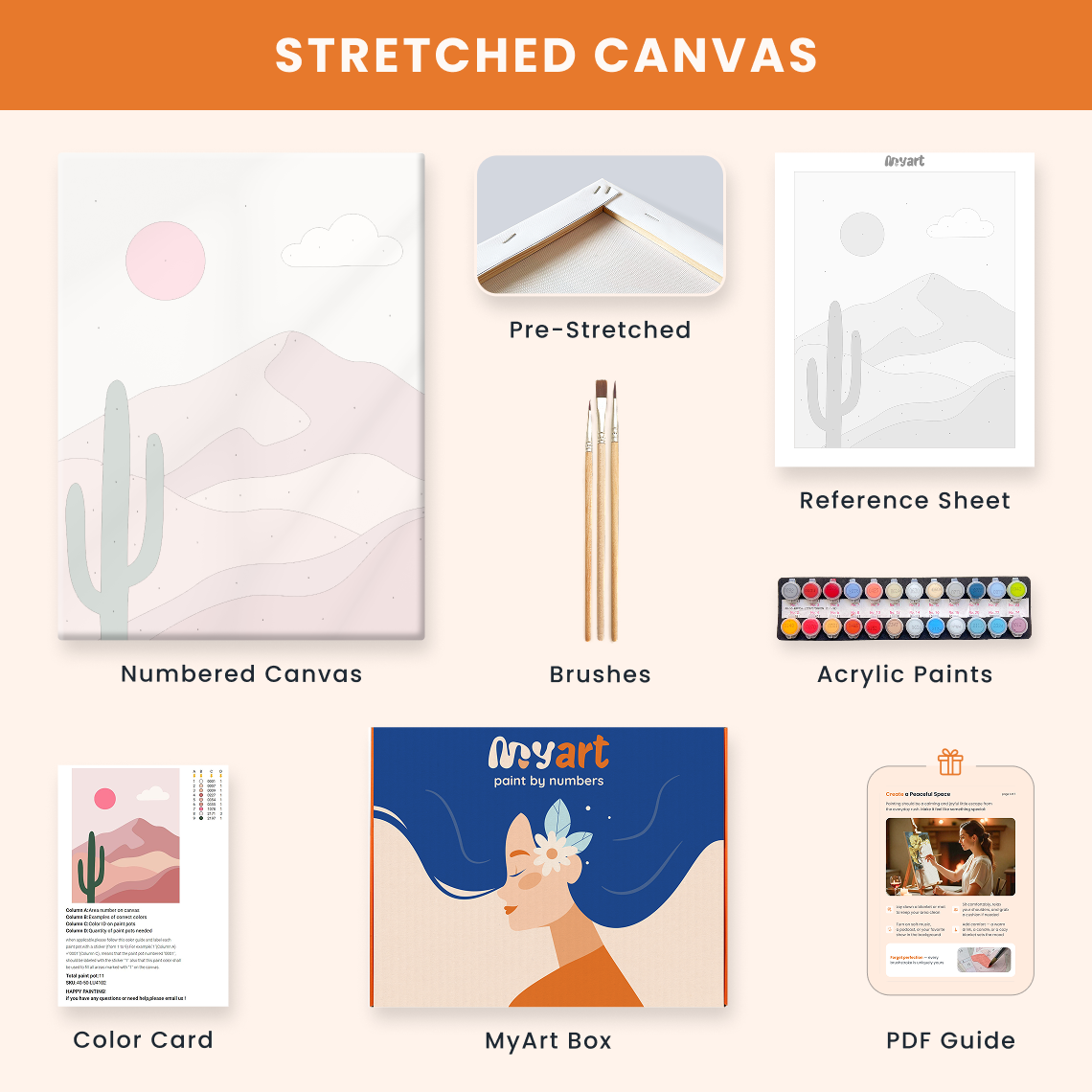 - Premium acrylic paint set (pre-mixed and numbered)