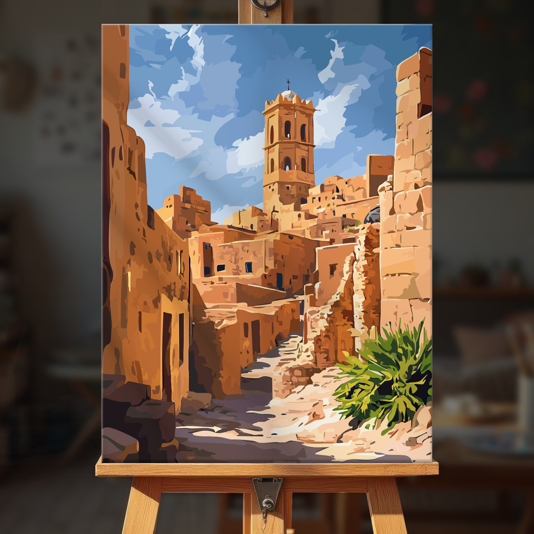 The canvas is pre-stretched on a wooden frame — ready to hang when finished.