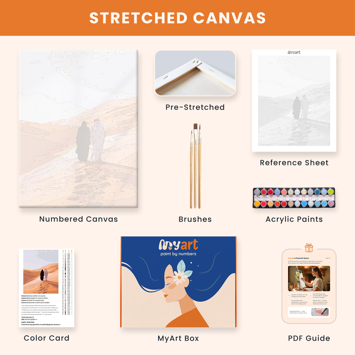 - Premium acrylic paint set (pre-mixed and numbered)