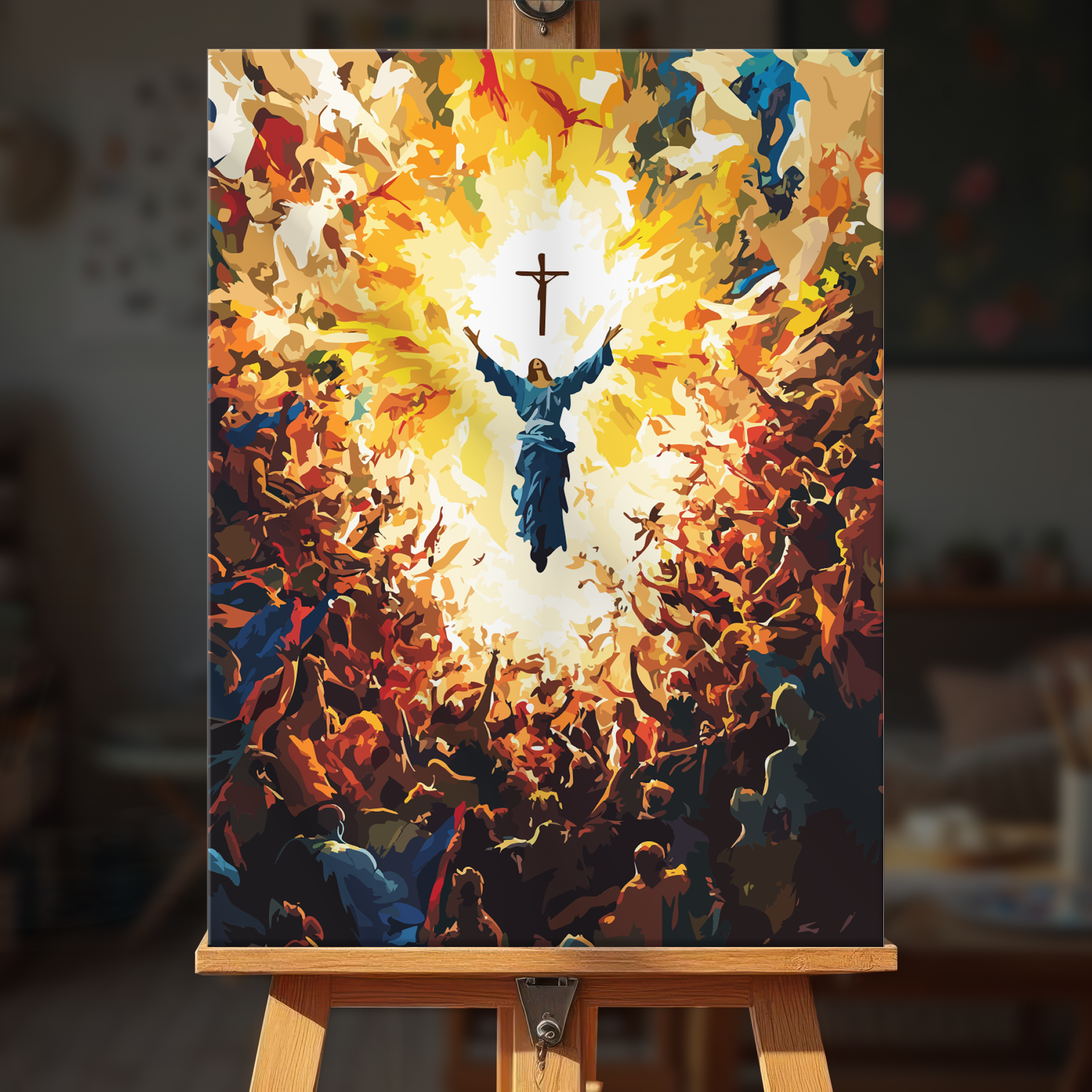 The canvas is pre-stretched on a wooden frame — ready to hang when finished.