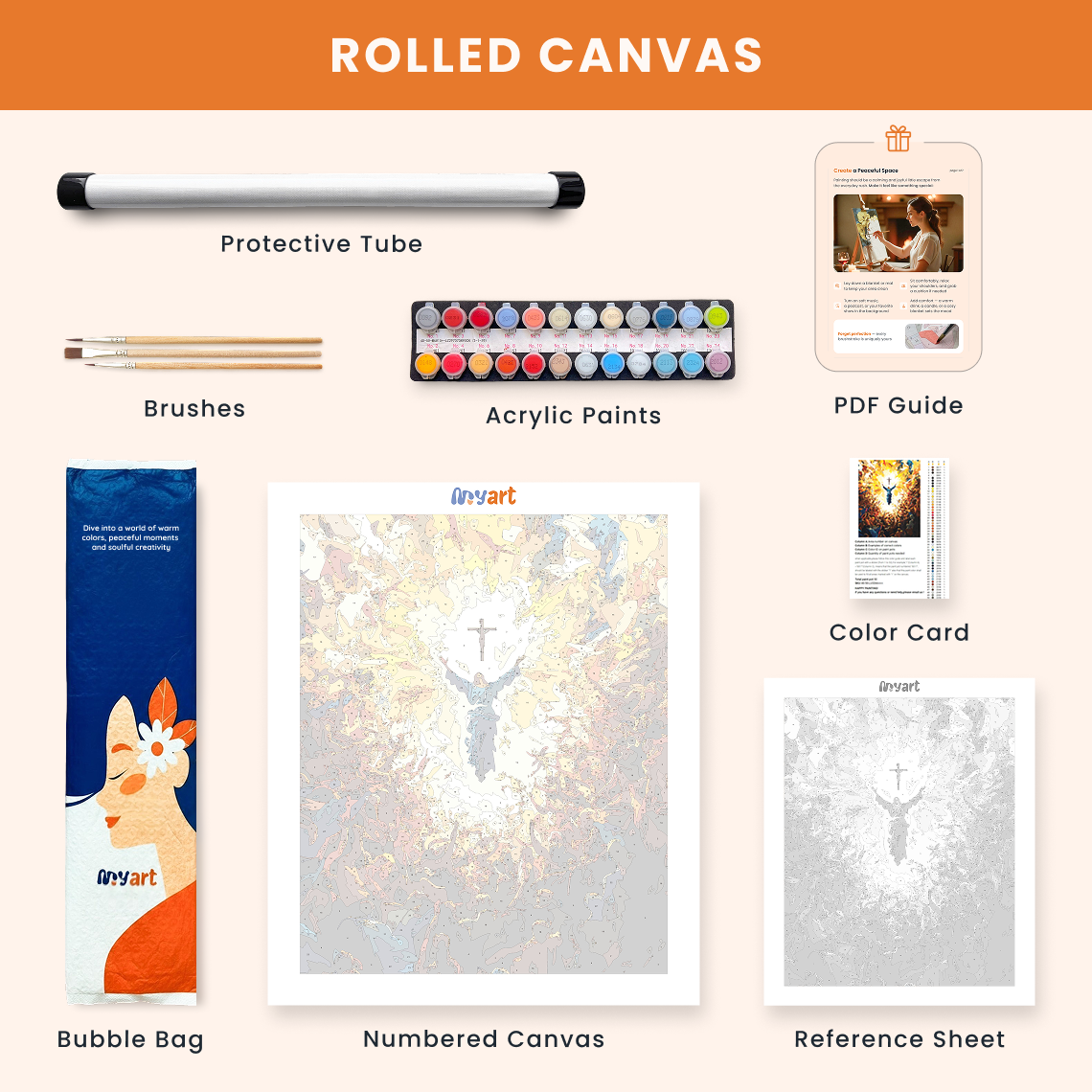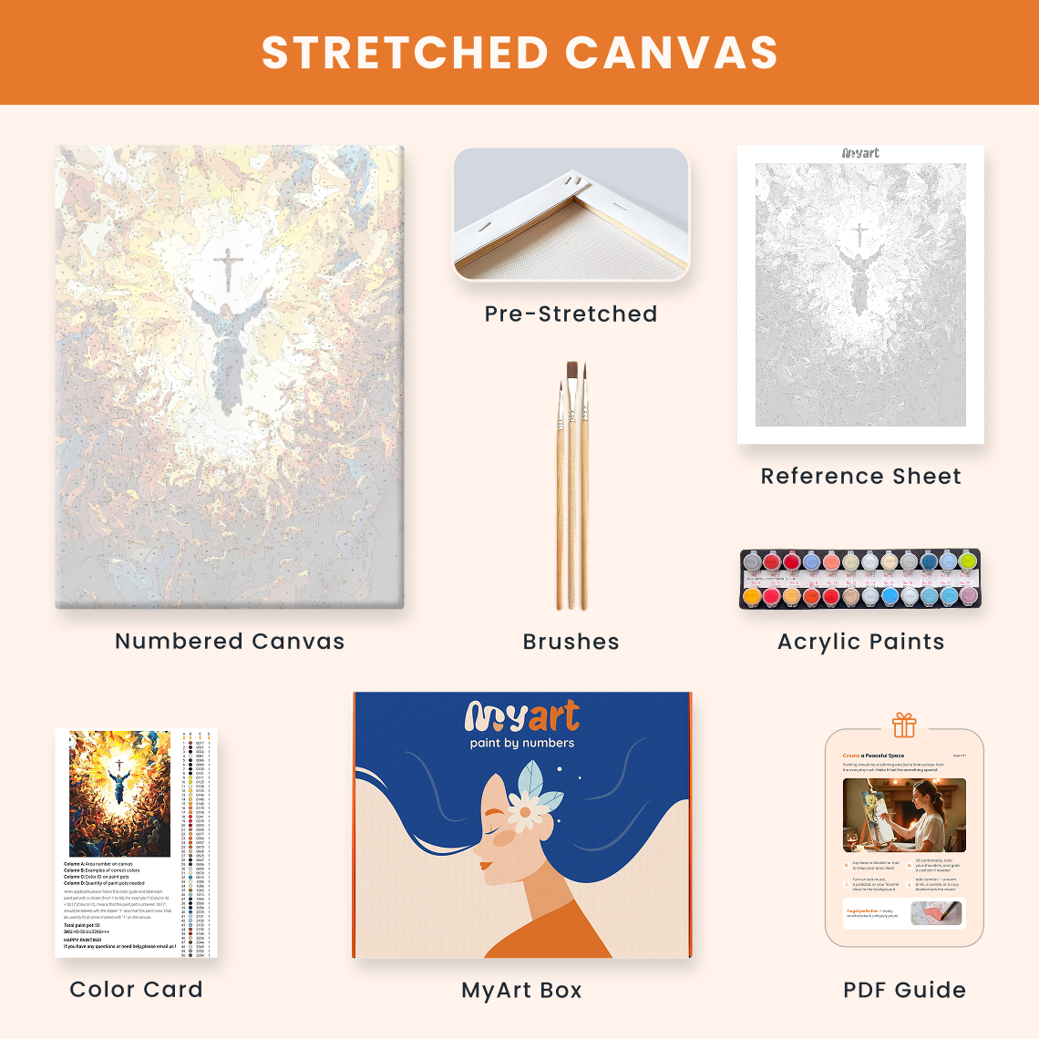 - Premium acrylic paint set (pre-mixed and numbered)