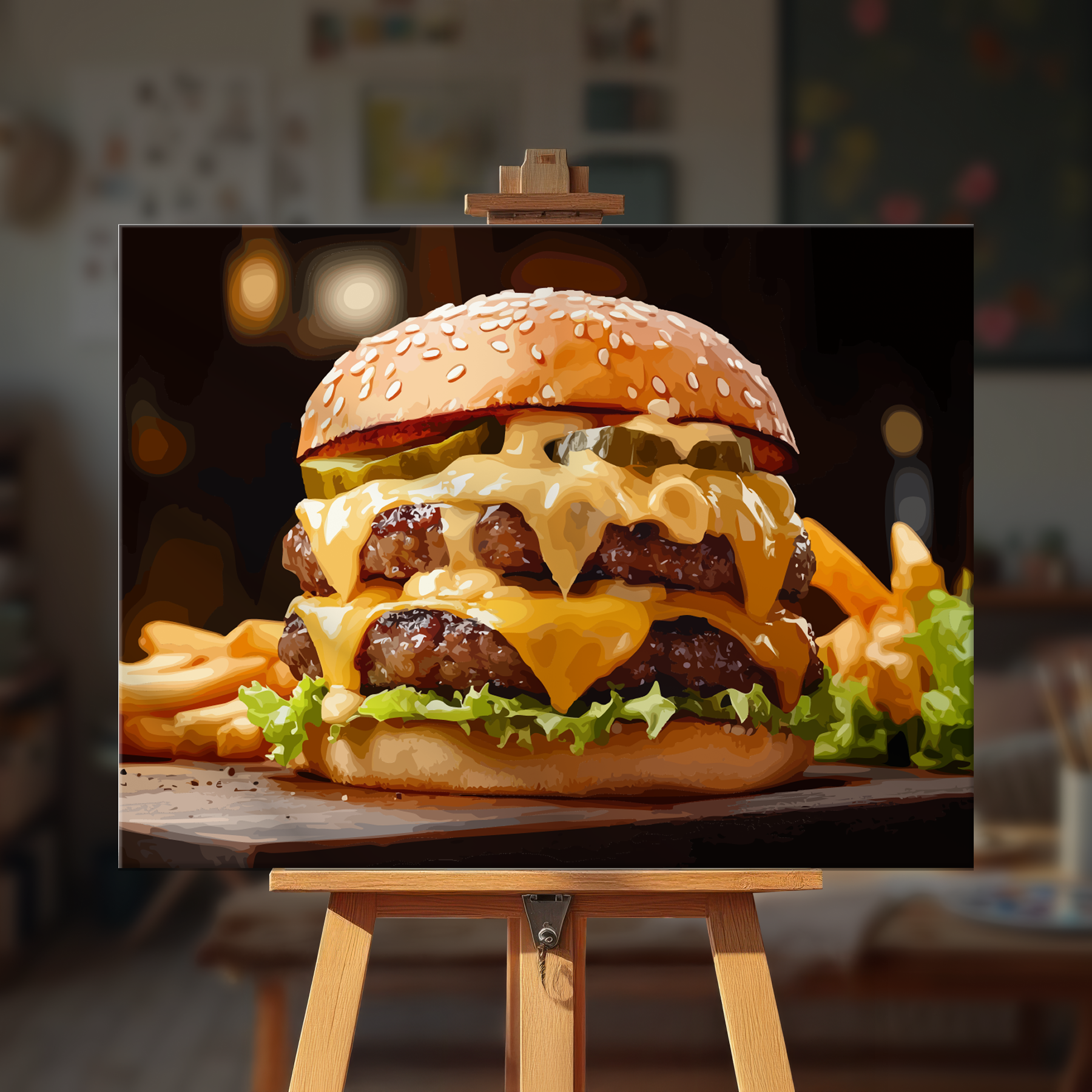 The canvas is pre-stretched on a wooden frame — ready to hang when finished.