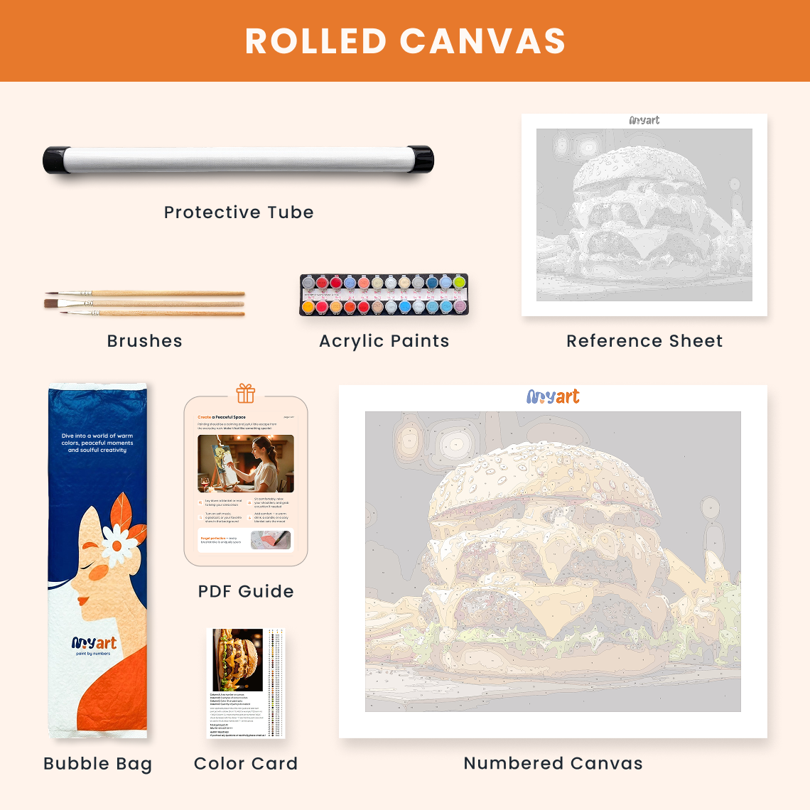 - Premium acrylic paint set (pre-mixed and numbered)