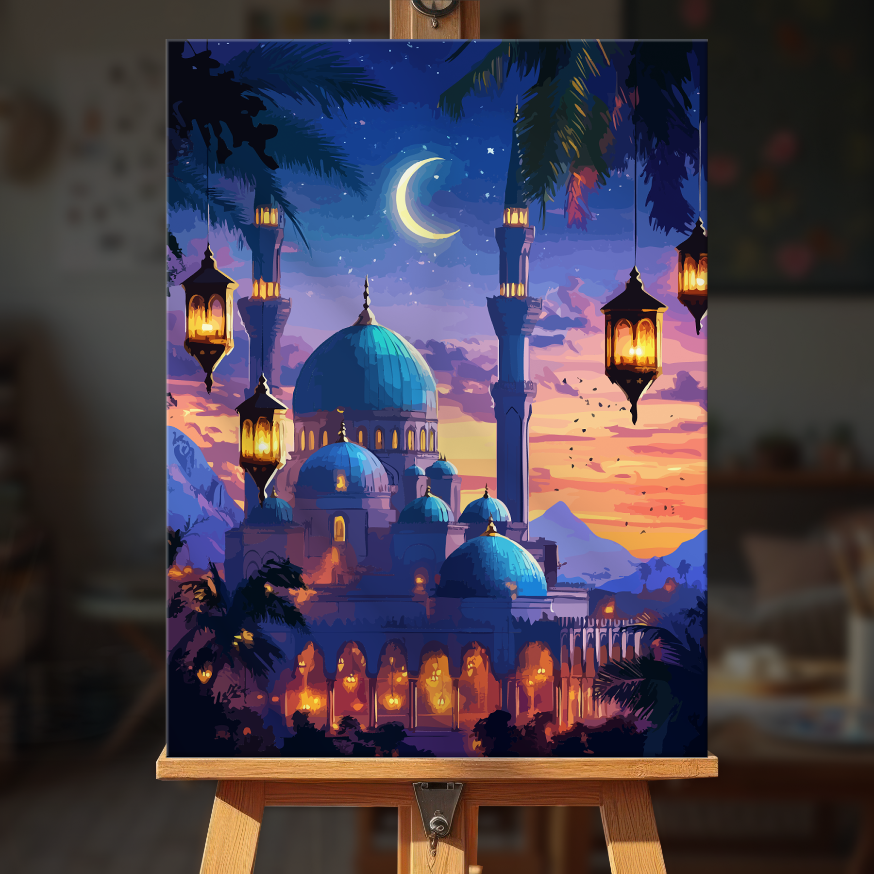 The canvas is pre-stretched on a wooden frame — ready to hang when finished.