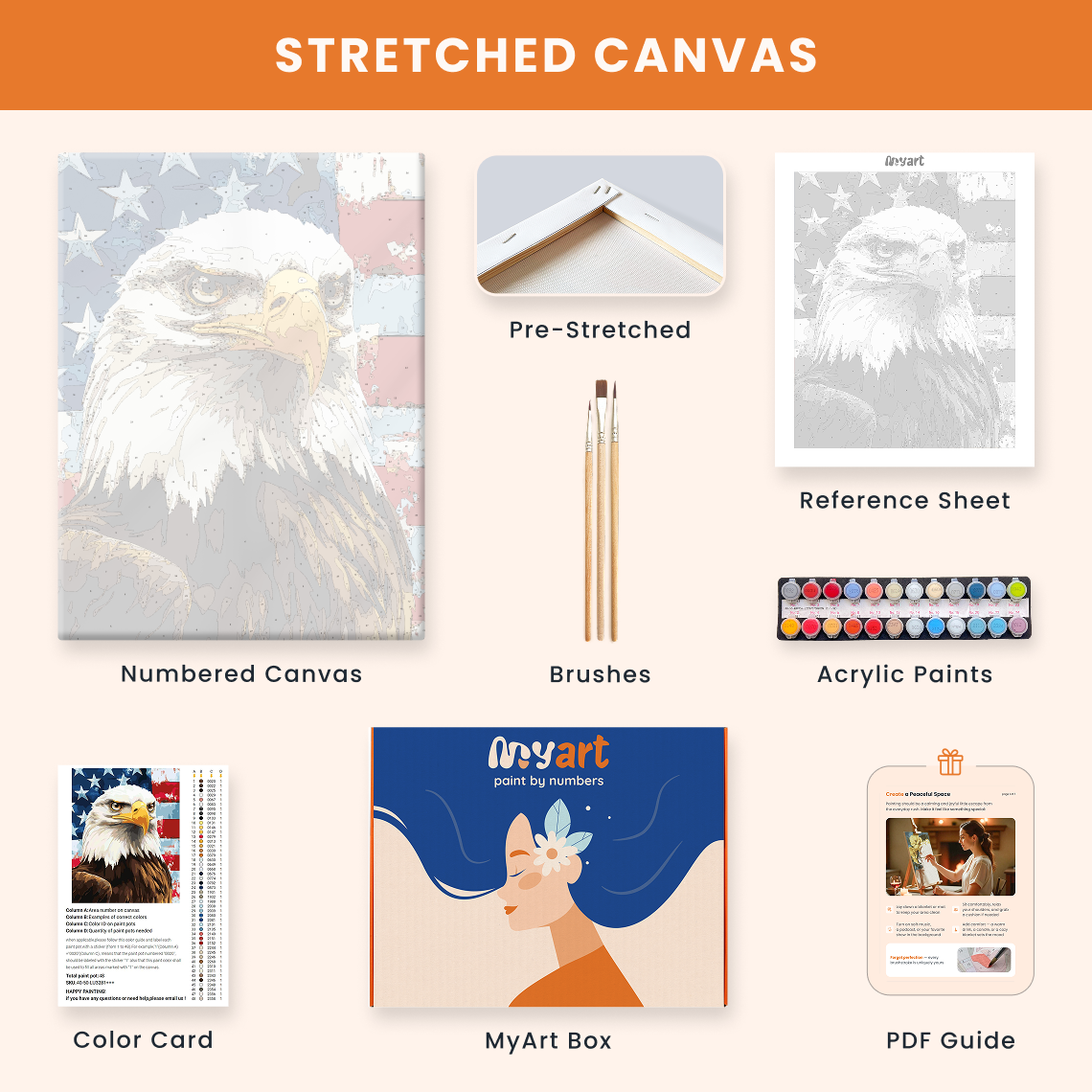 - Premium acrylic paint set (pre-mixed and numbered)