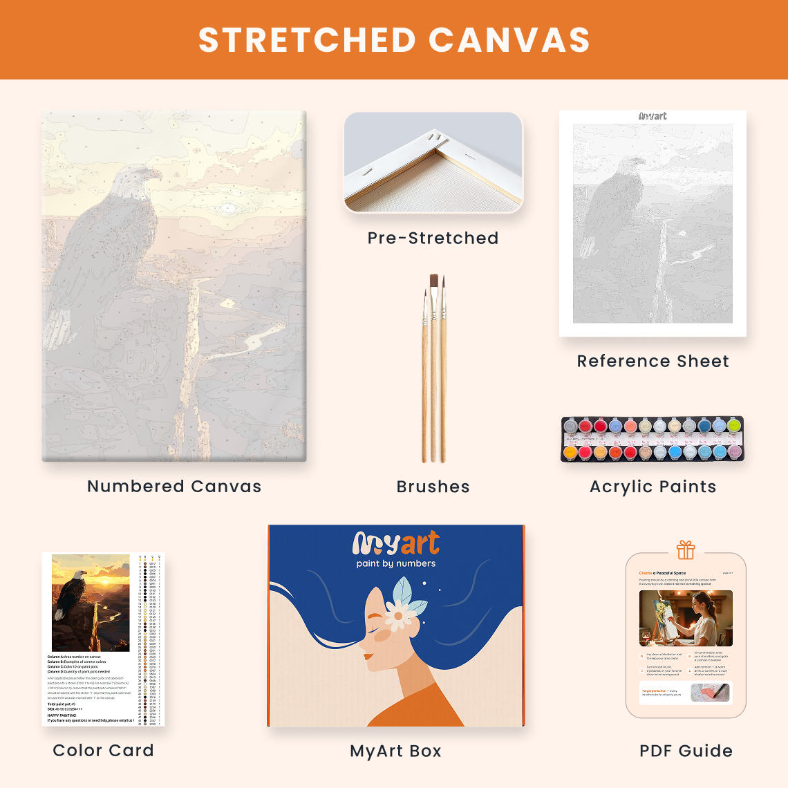 - Premium acrylic paint set (pre-mixed and numbered)