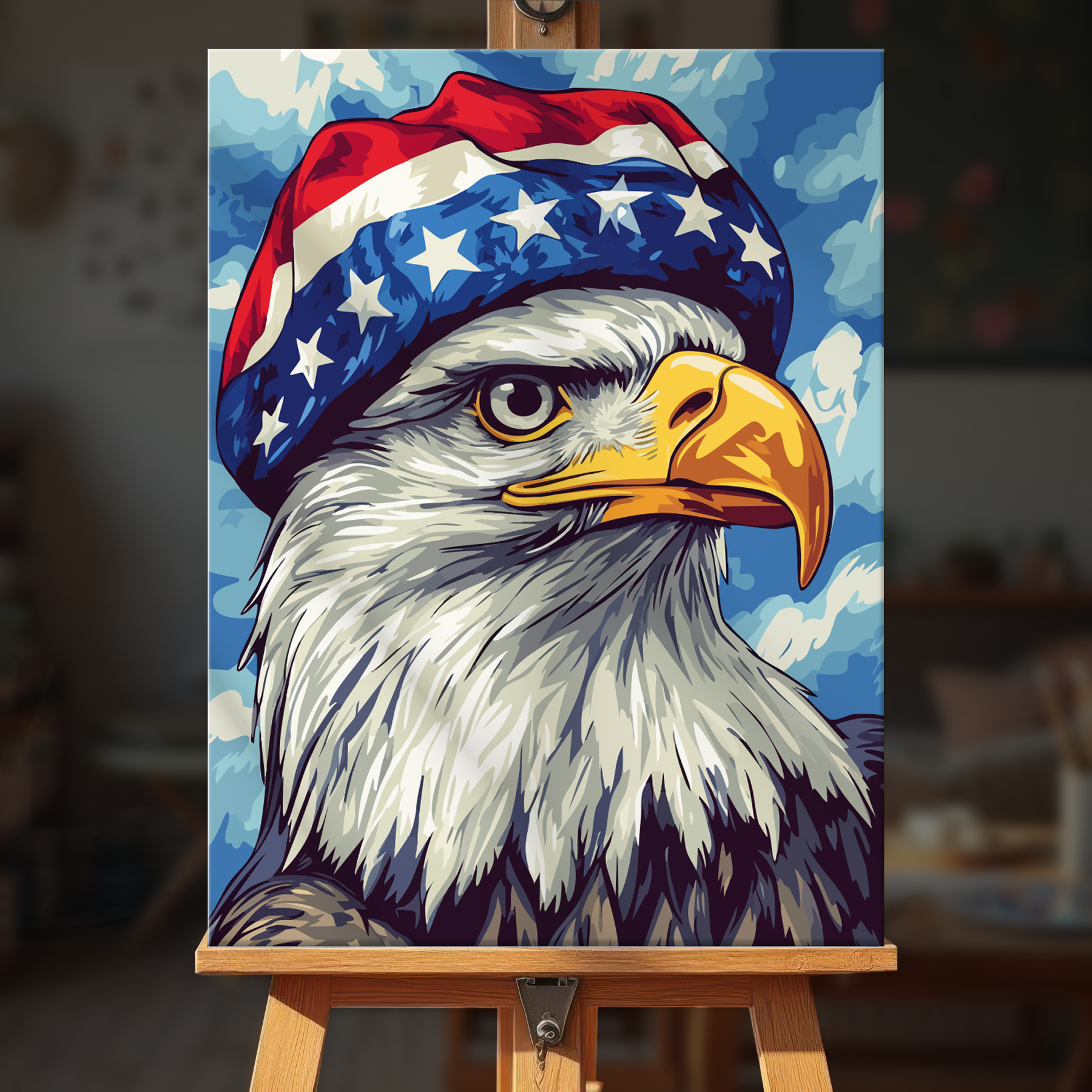 The canvas is pre-stretched on a wooden frame — ready to hang when finished.