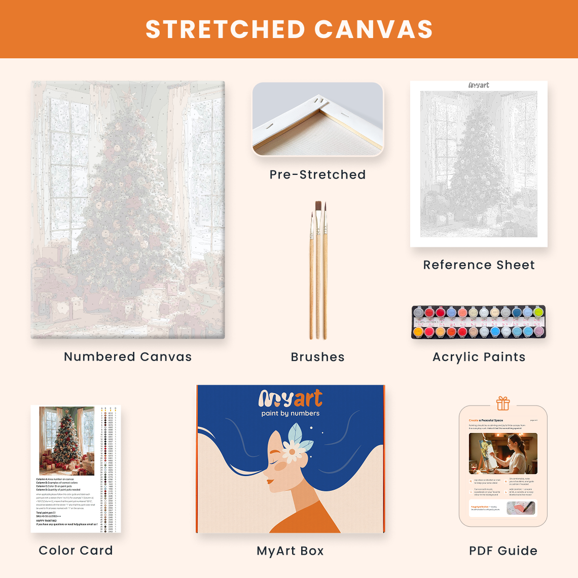 - Premium acrylic paint set (pre-mixed and numbered)