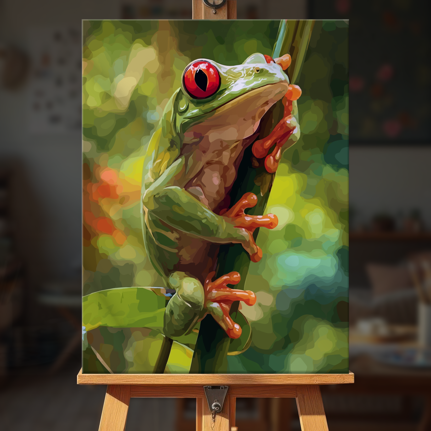 The canvas is pre-stretched on a wooden frame — ready to hang when finished.