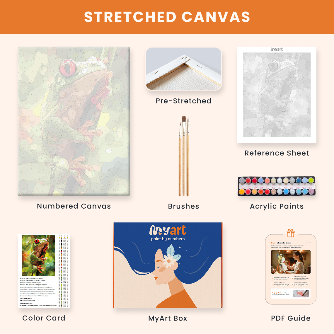 - Premium acrylic paint set (pre-mixed and numbered)