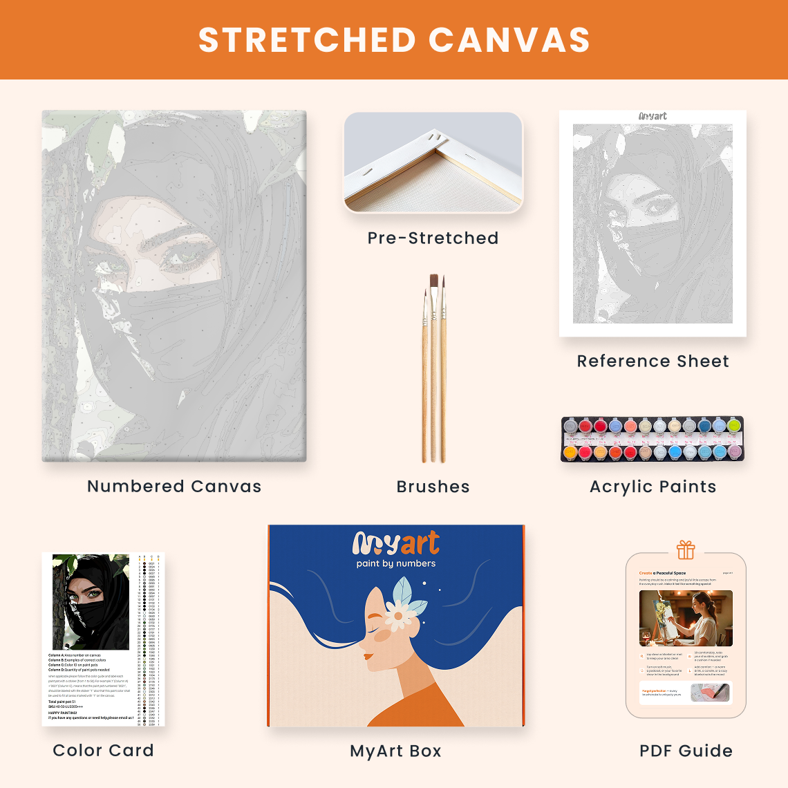The canvas is pre-stretched on a wooden frame — ready to hang when finished.