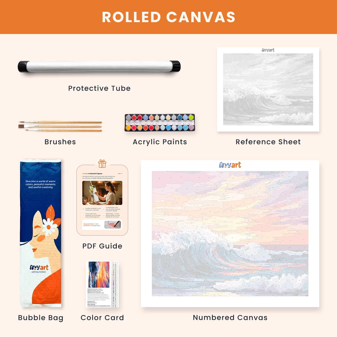 - Premium acrylic paint set (pre-mixed and numbered)