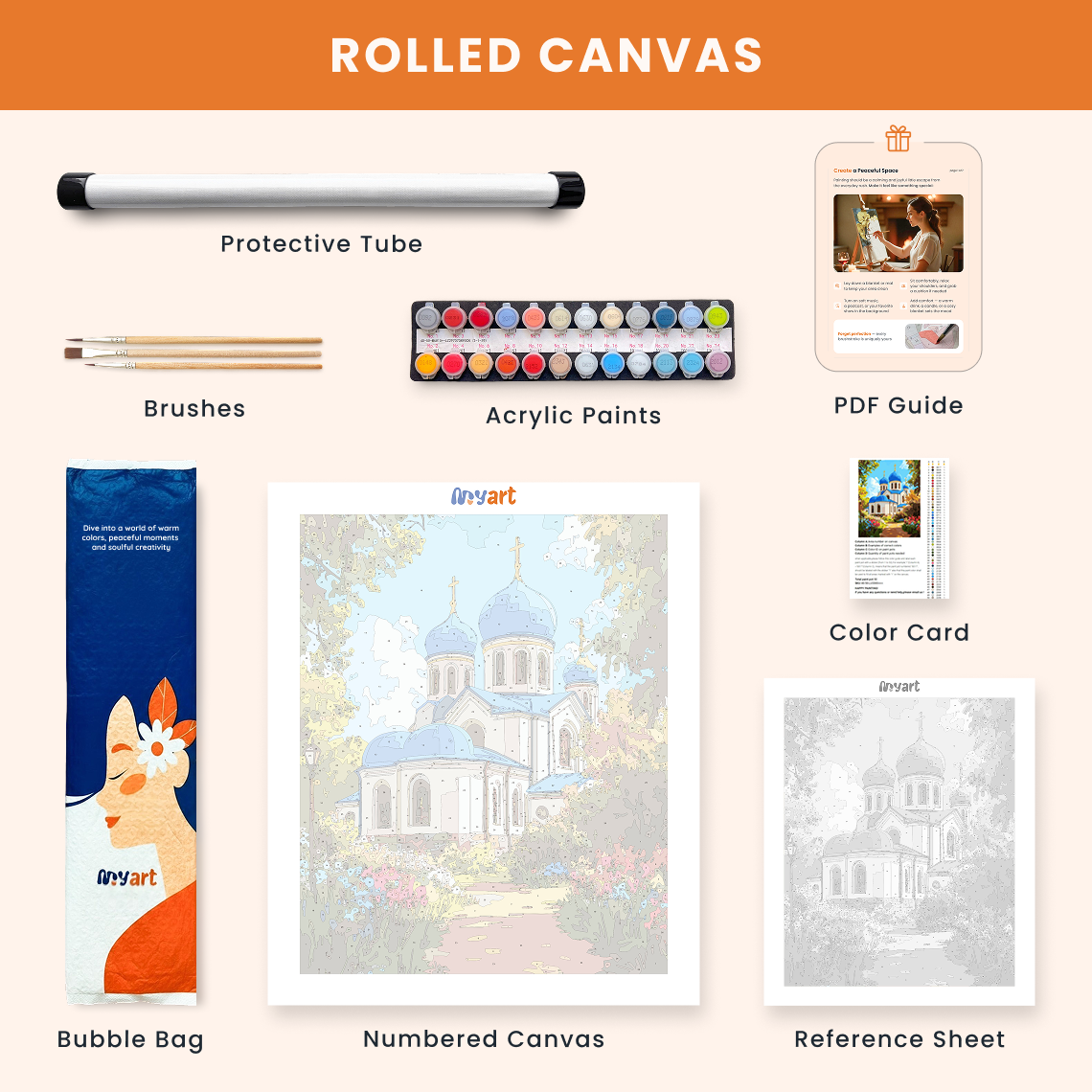 - Premium acrylic paint set (pre-mixed and numbered)