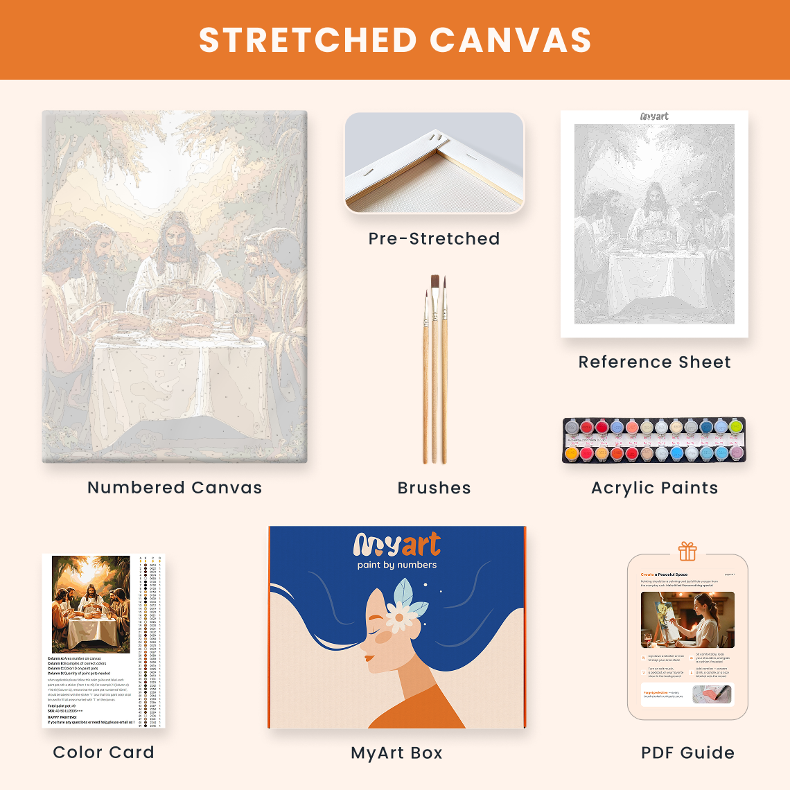 The canvas is pre-stretched on a wooden frame — ready to hang when finished.