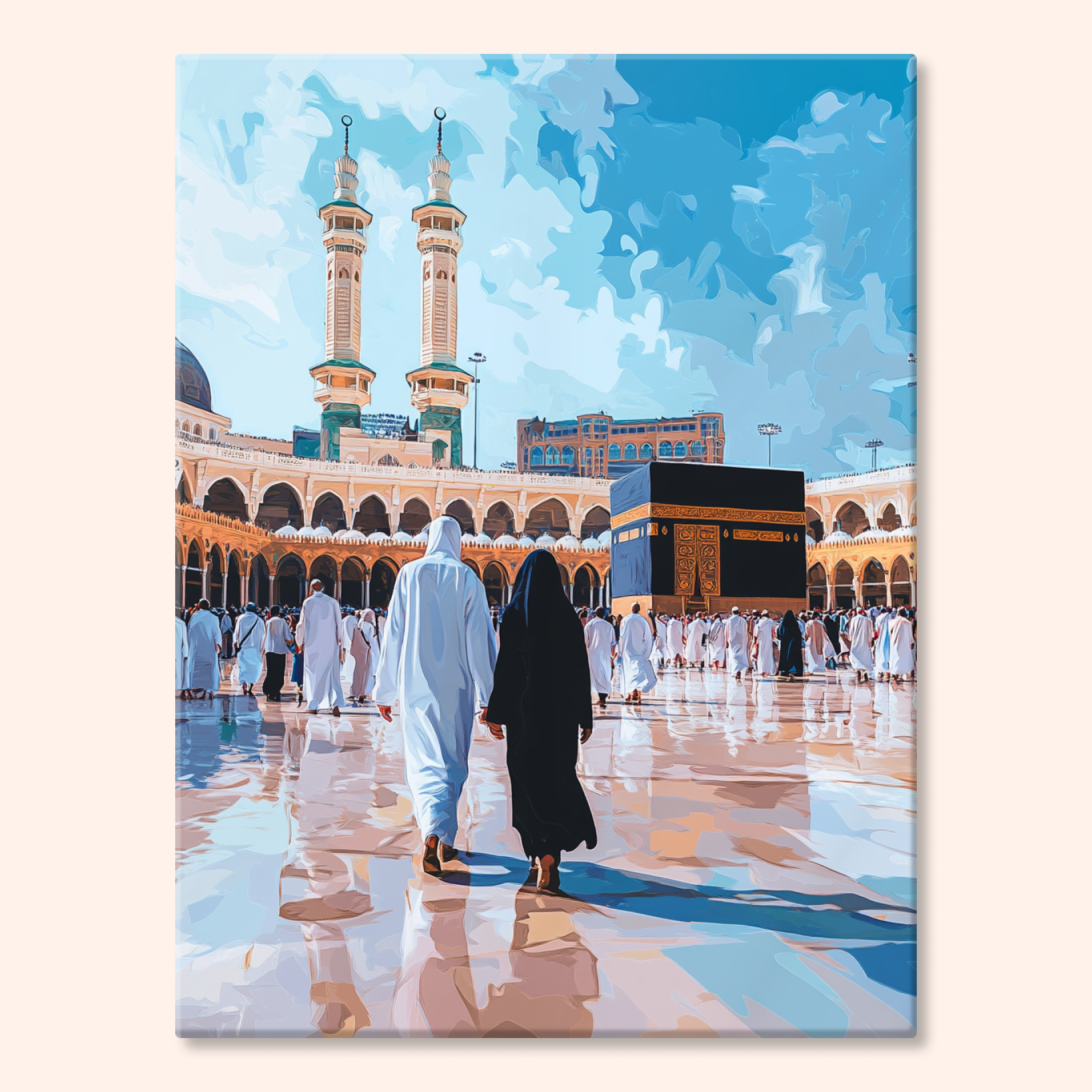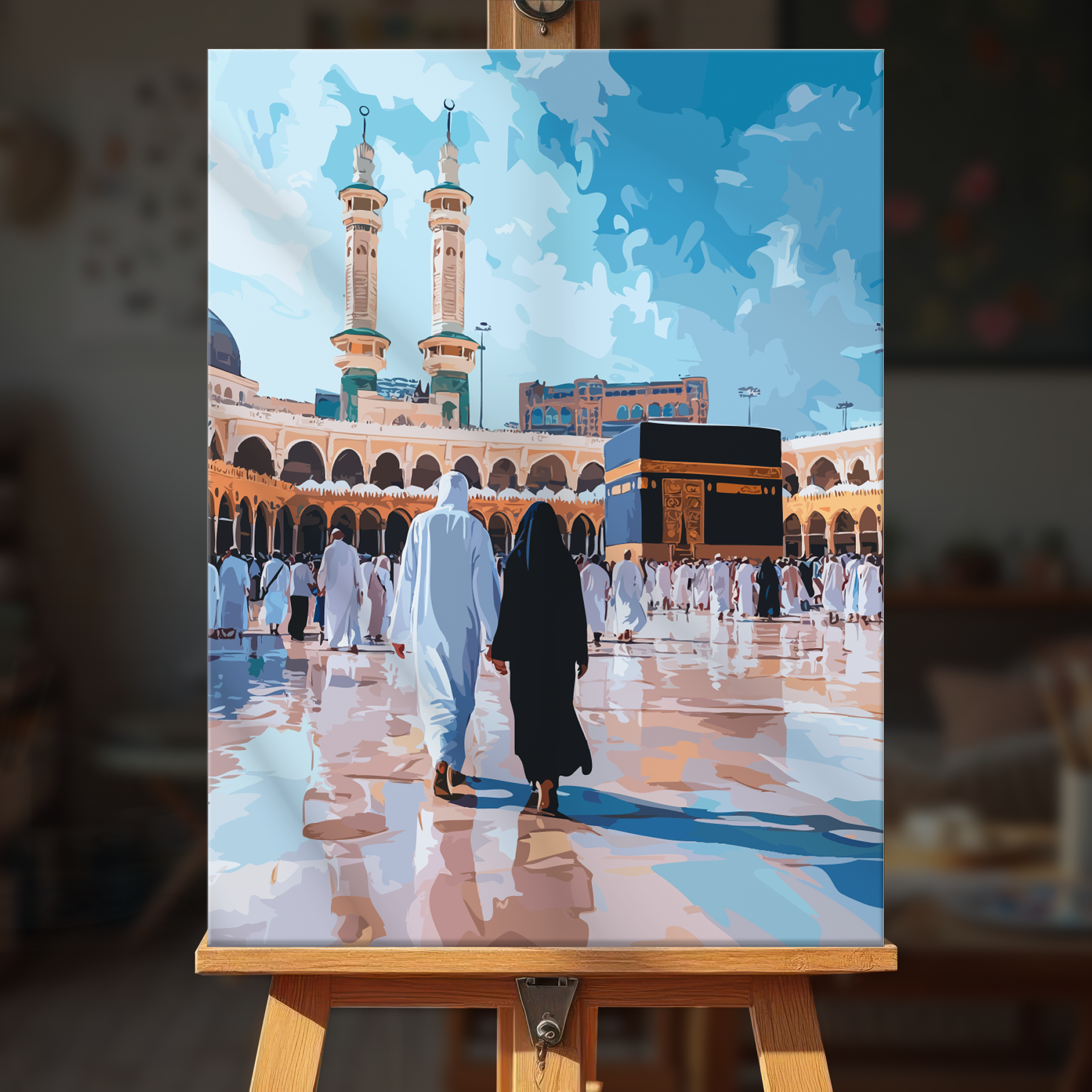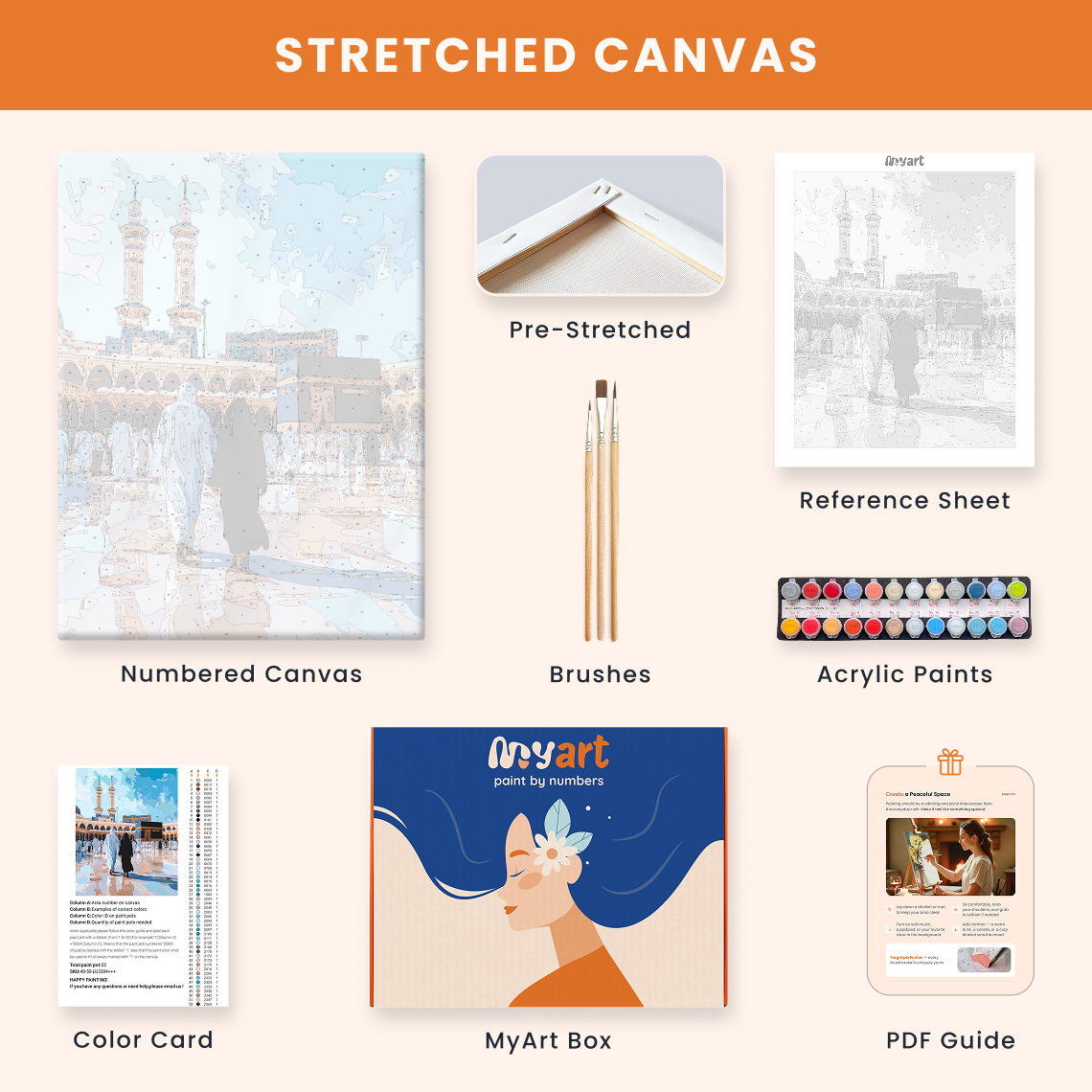 The canvas is pre-stretched on a wooden frame — ready to hang when finished.