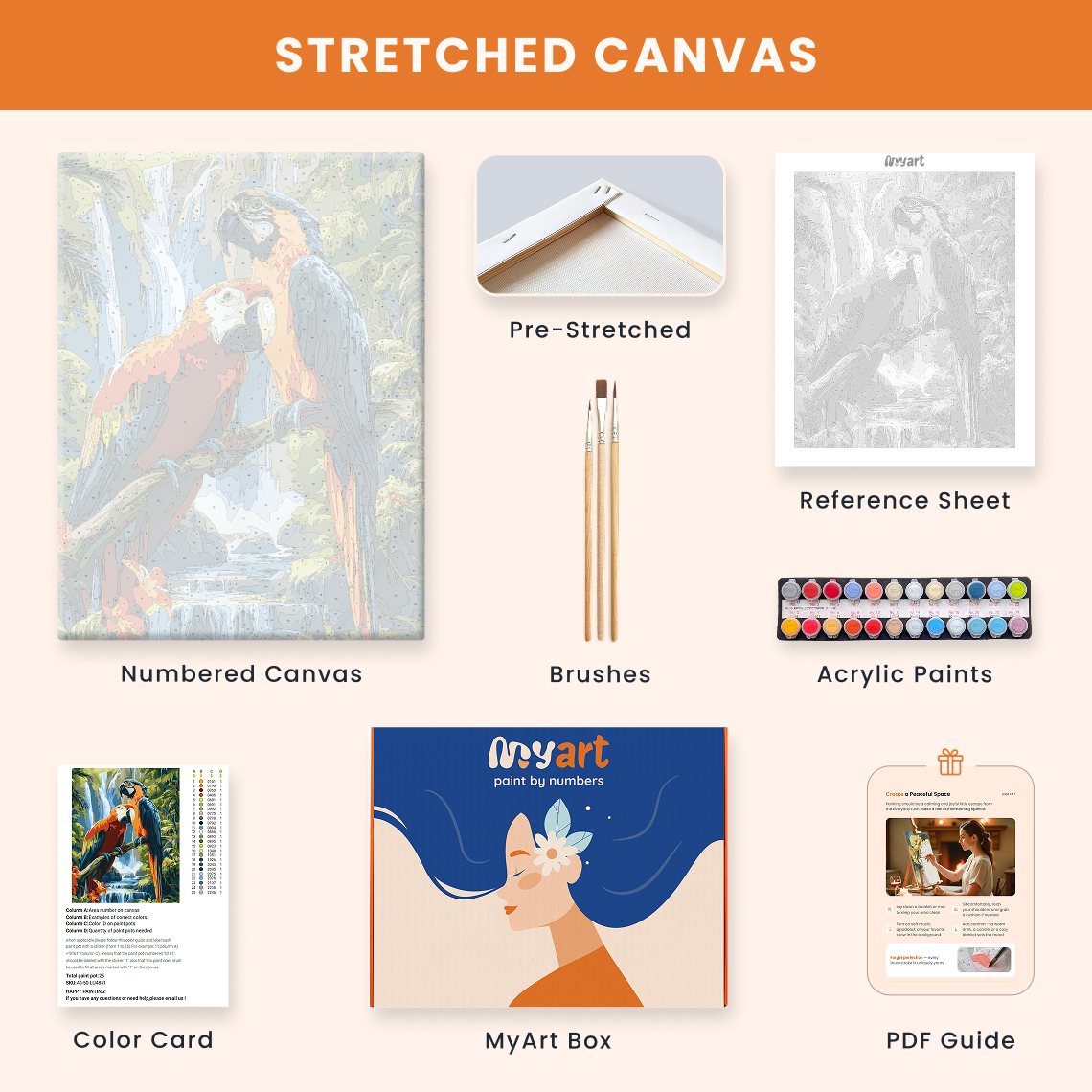 - Premium acrylic paint set (pre-mixed and numbered)