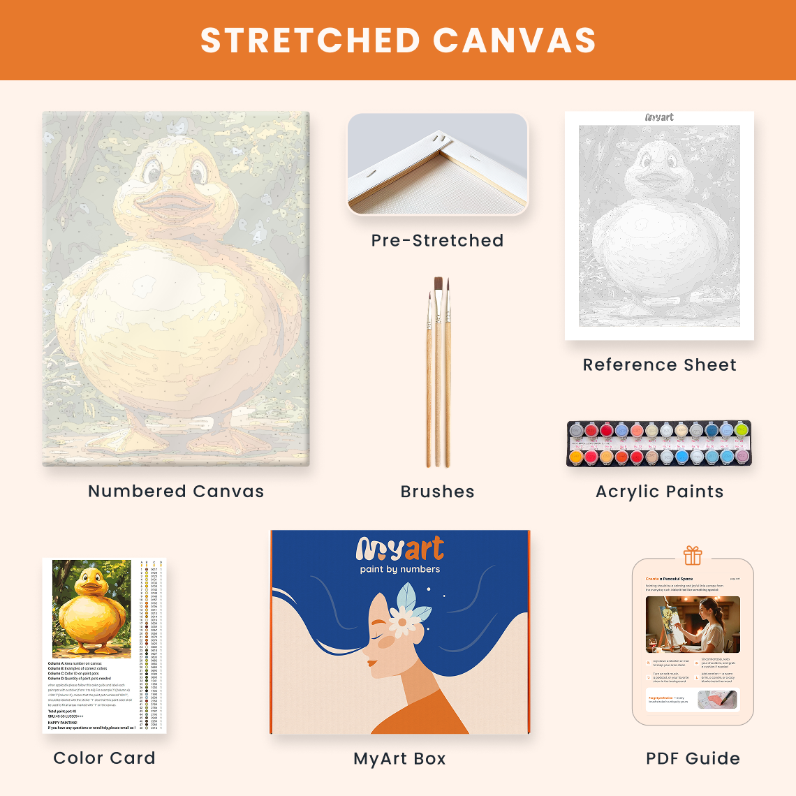 - Premium acrylic paint set (pre-mixed and numbered)