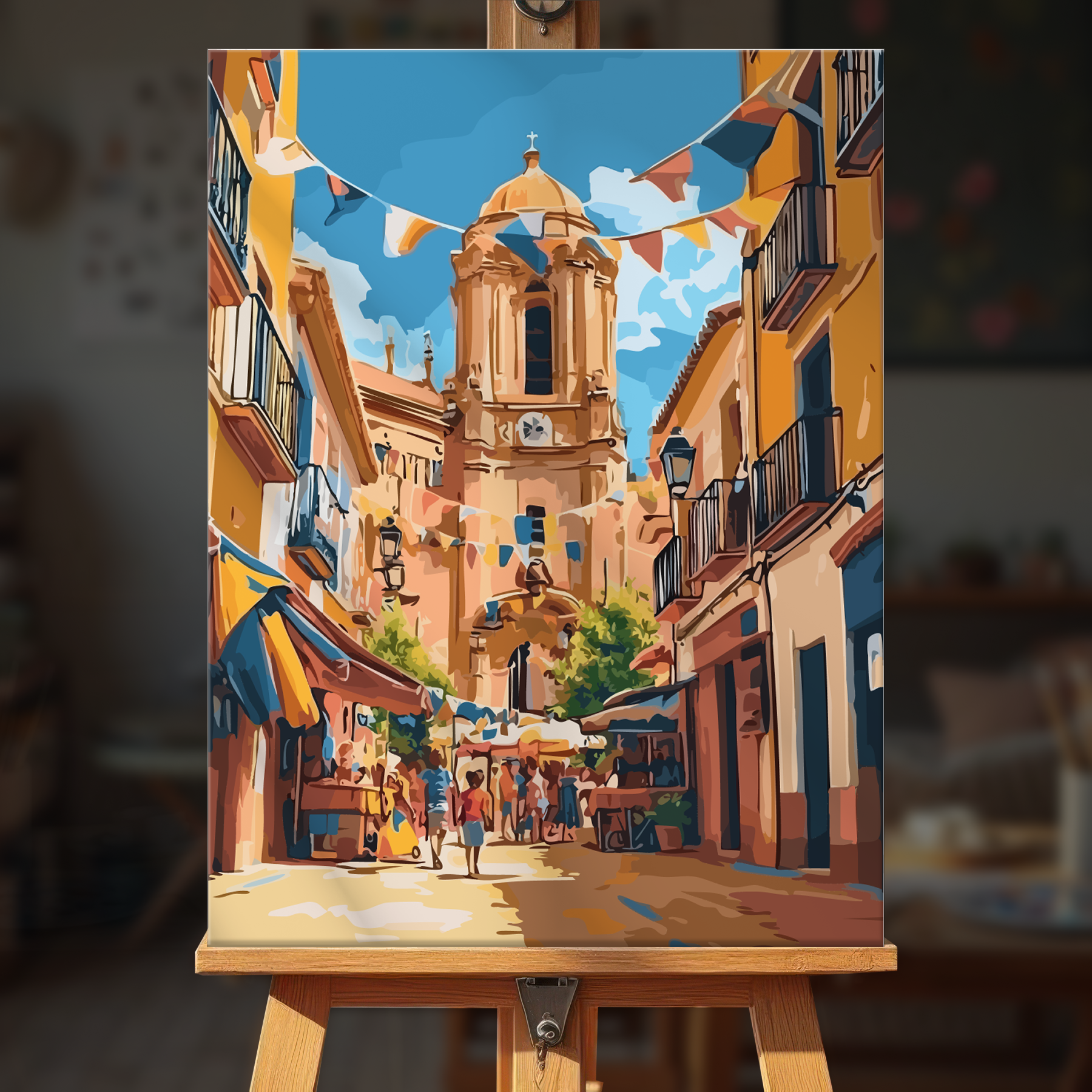 The canvas is pre-stretched on a wooden frame — ready to hang when finished.