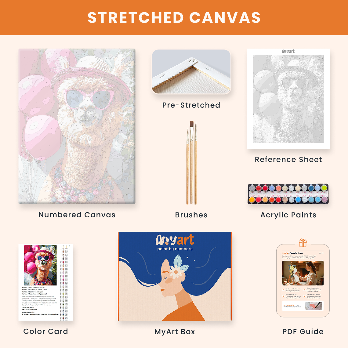The canvas is pre-stretched on a wooden frame — ready to hang when finished.