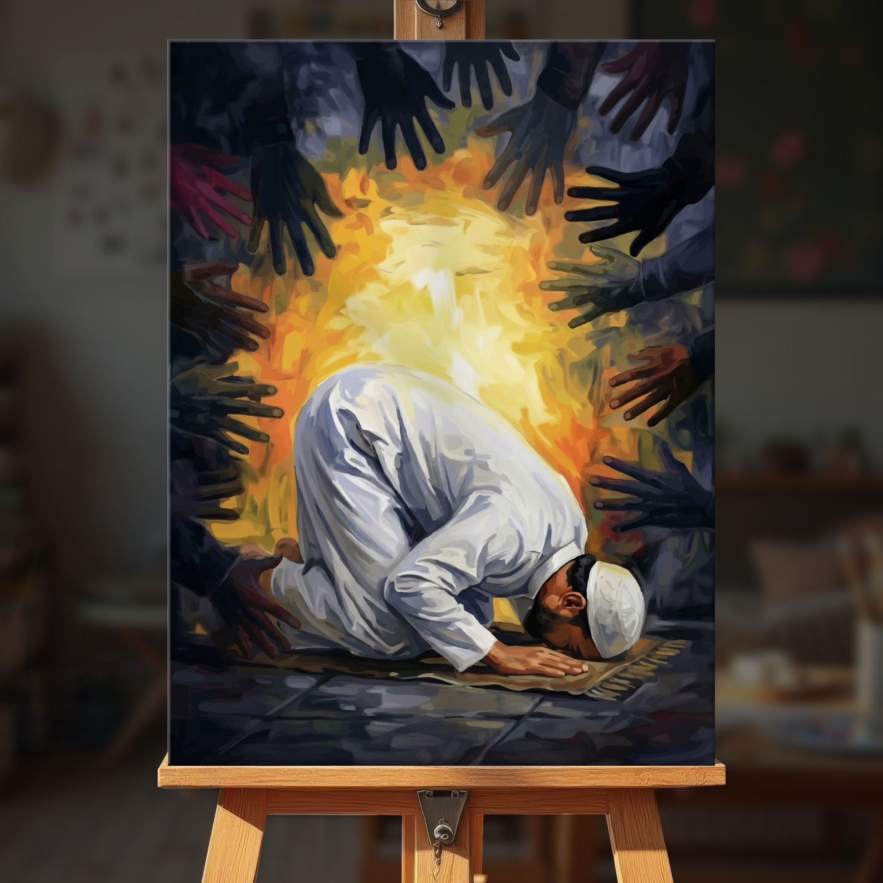 The canvas is pre-stretched on a wooden frame — ready to hang when finished.