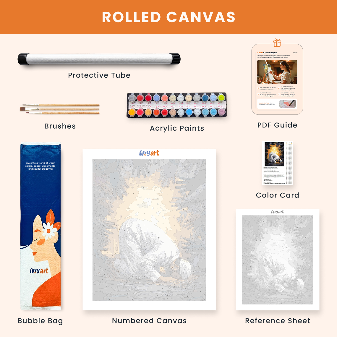 - Premium acrylic paint set (pre-mixed and numbered)