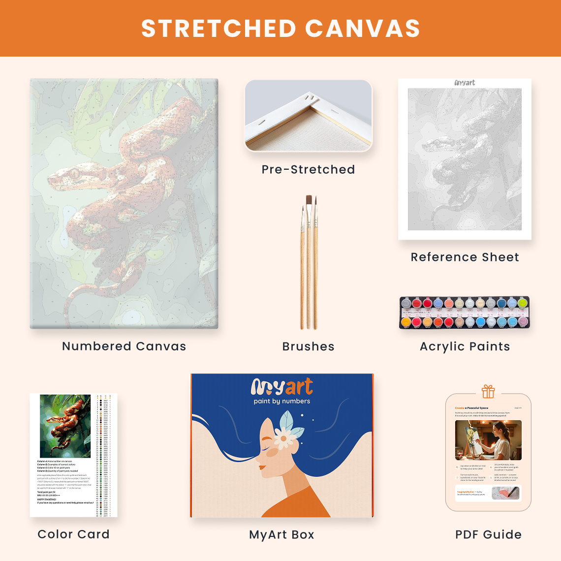 - Premium acrylic paint set (pre-mixed and numbered)