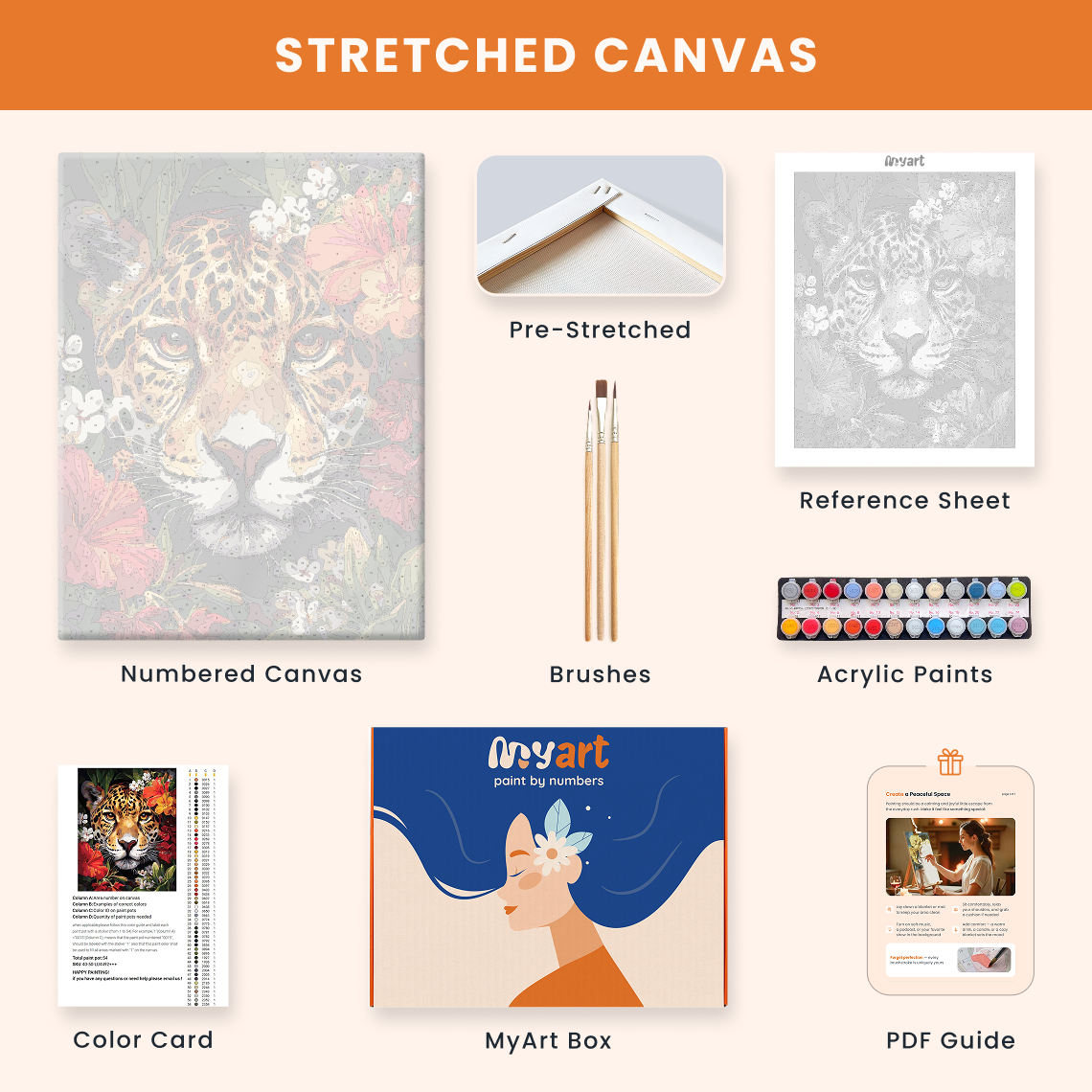 - Premium acrylic paint set (pre-mixed and numbered)