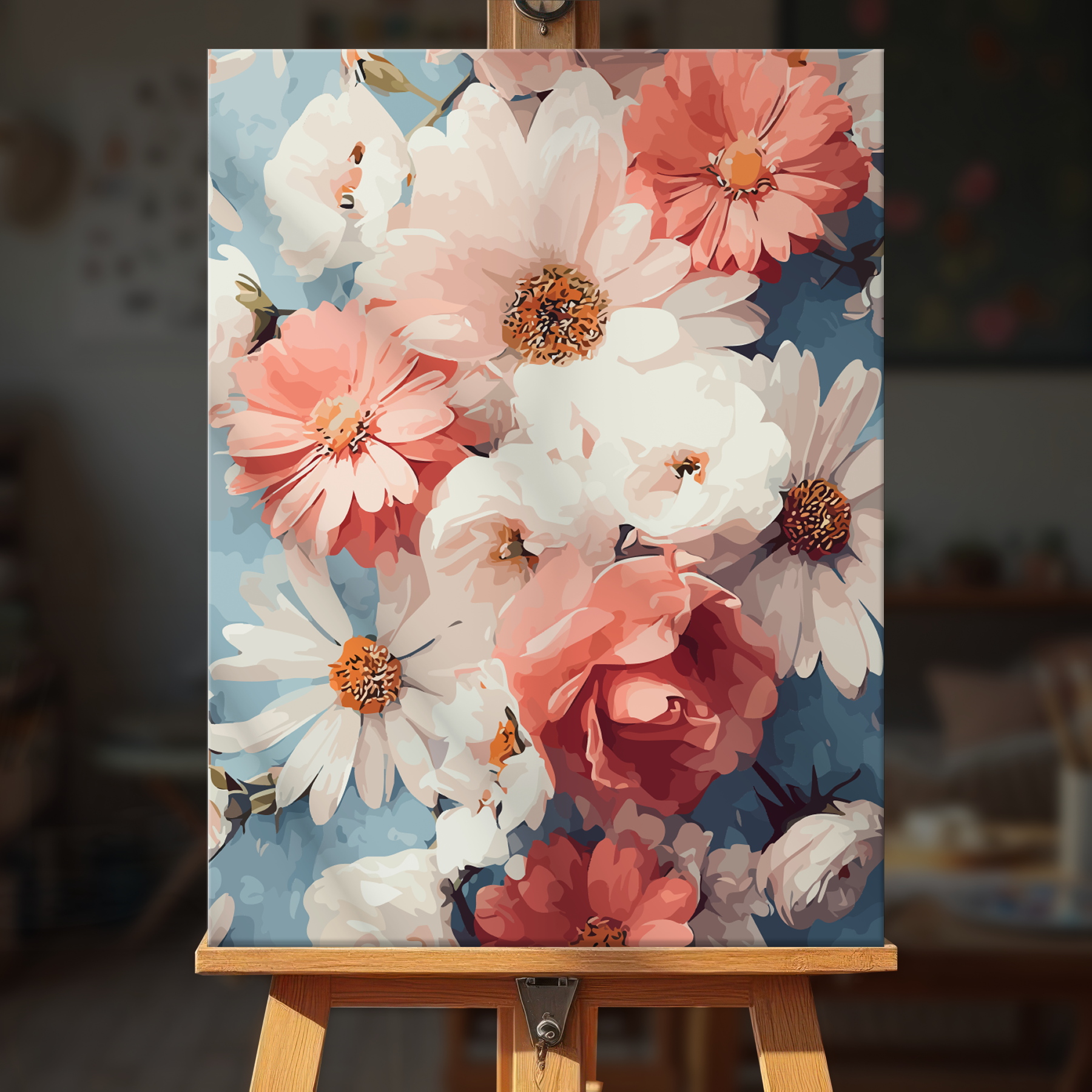 The canvas is pre-stretched on a wooden frame — ready to hang when finished.