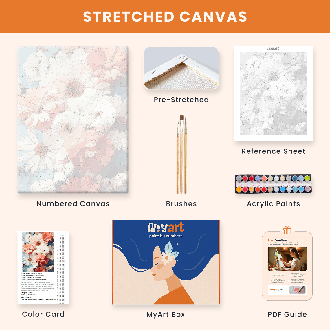 - Premium acrylic paint set (pre-mixed and numbered)
