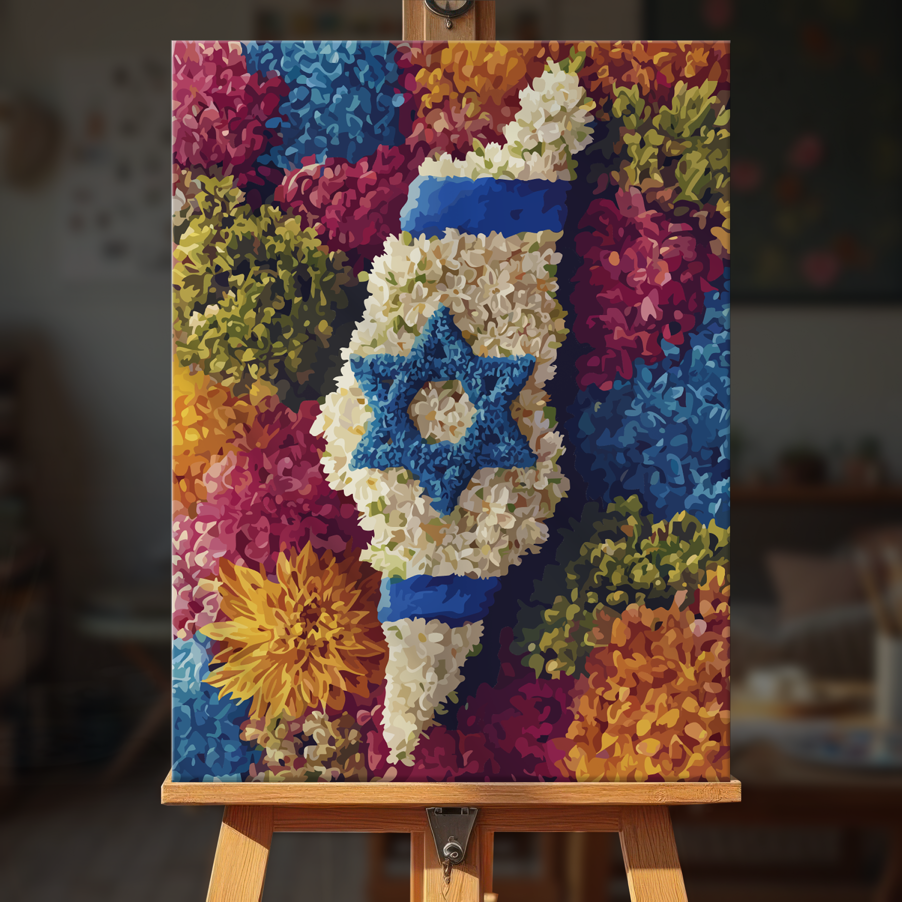The canvas is pre-stretched on a wooden frame — ready to hang when finished.