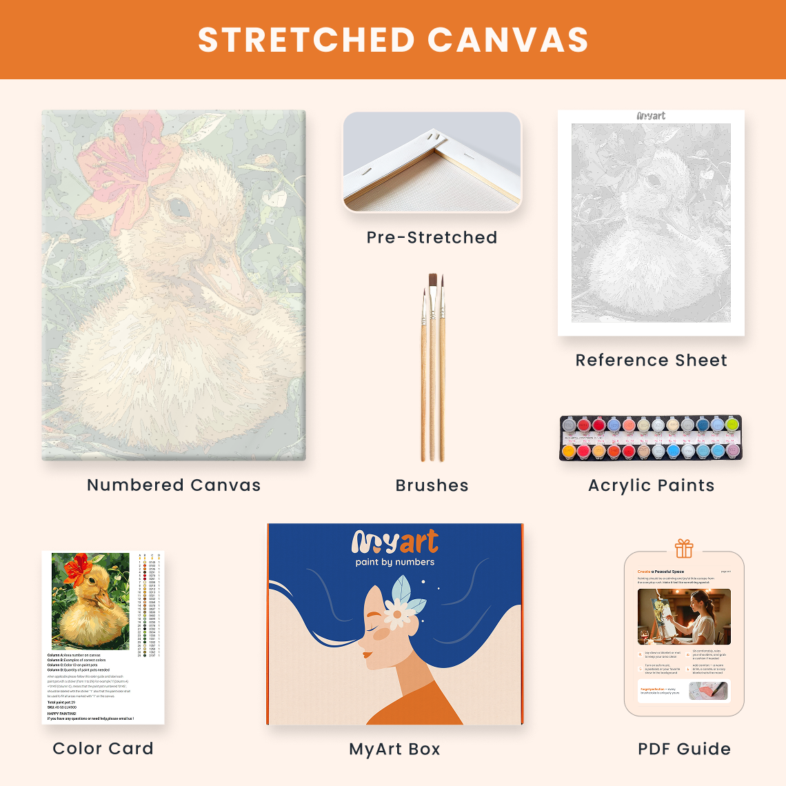 - Premium acrylic paint set (pre-mixed and numbered)