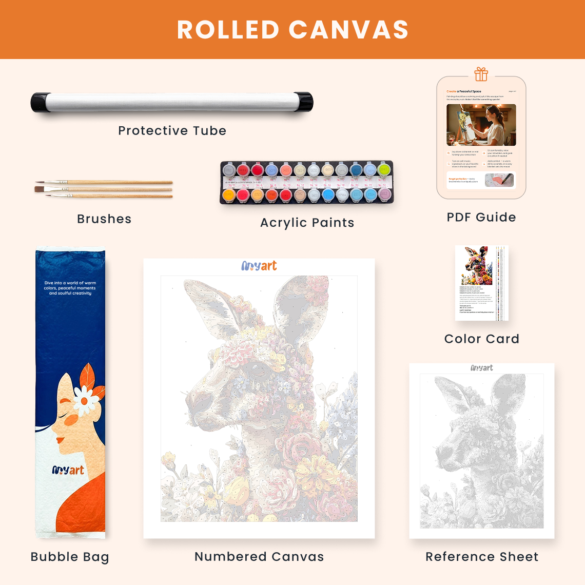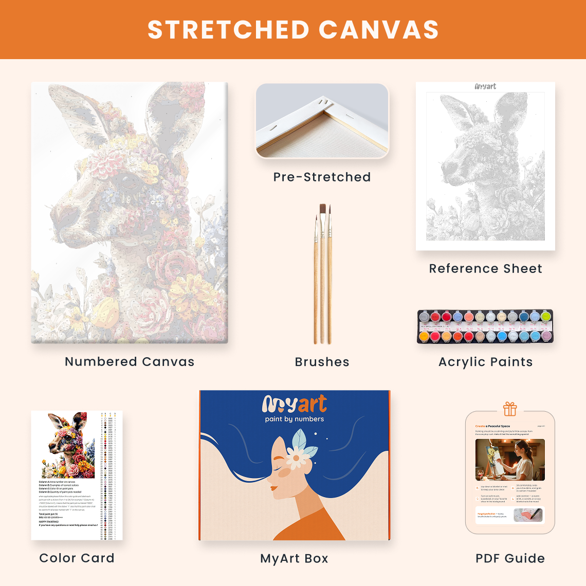 - Premium acrylic paint set (pre-mixed and numbered)