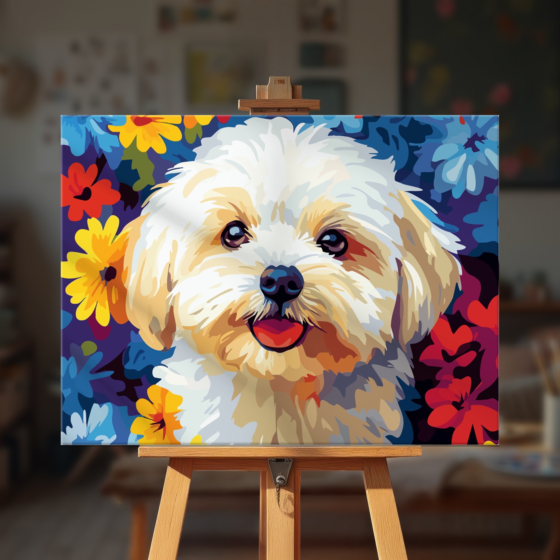 The canvas is pre-stretched on a wooden frame โ ready to hang when finished.