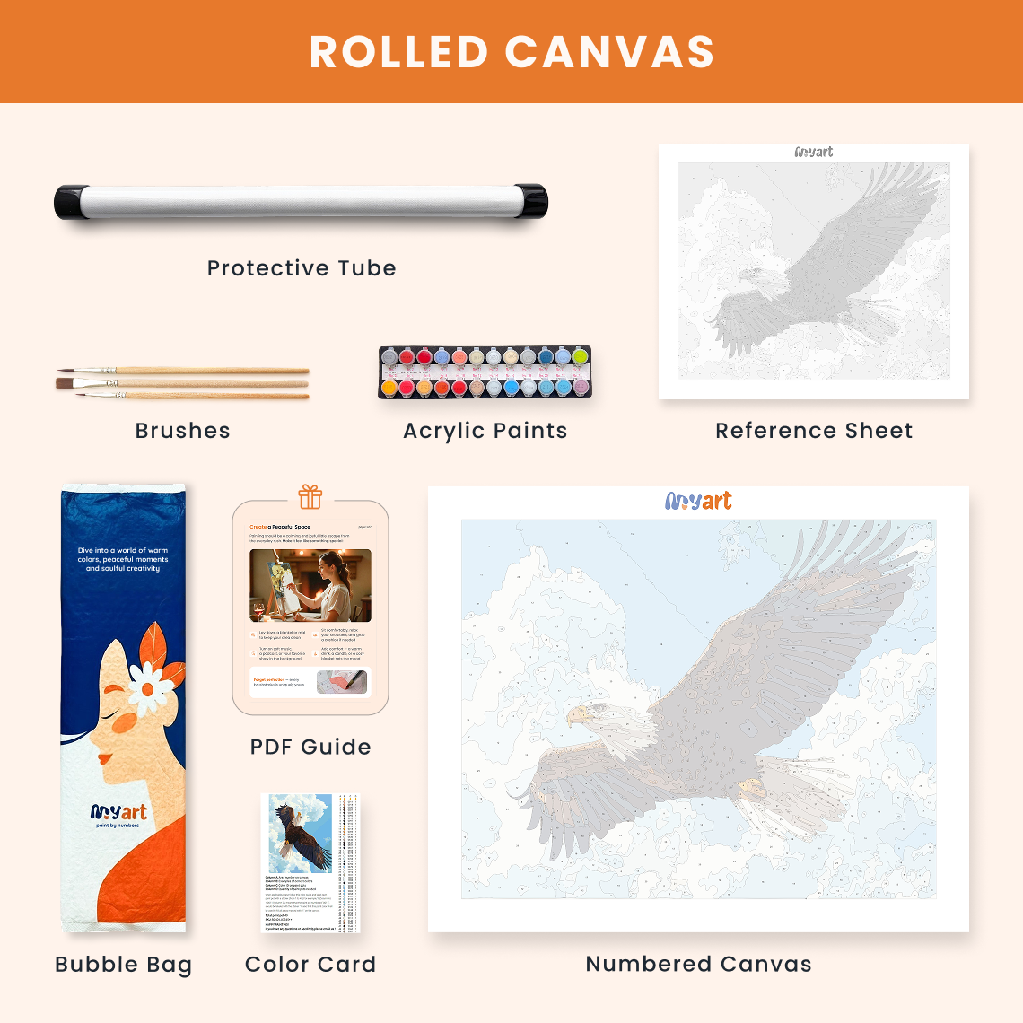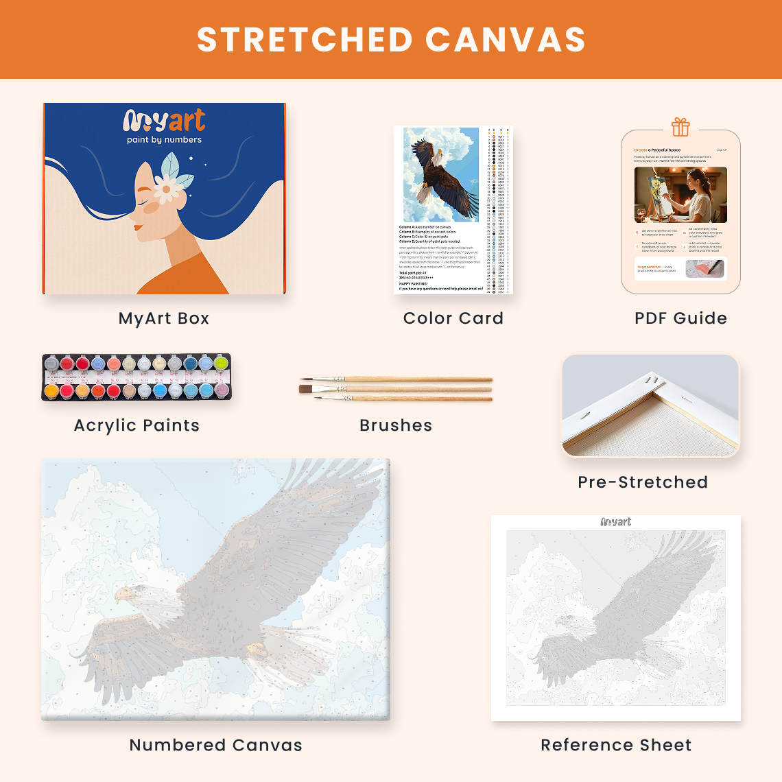- Premium acrylic paint set (pre-mixed and numbered)
